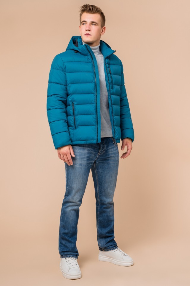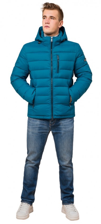 Бирюзовая теплая куртка зимняя для мужчин модель 36450