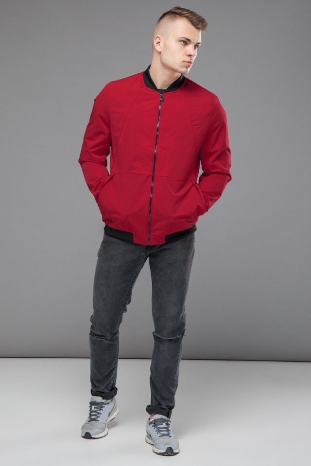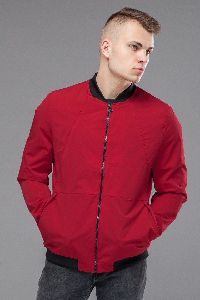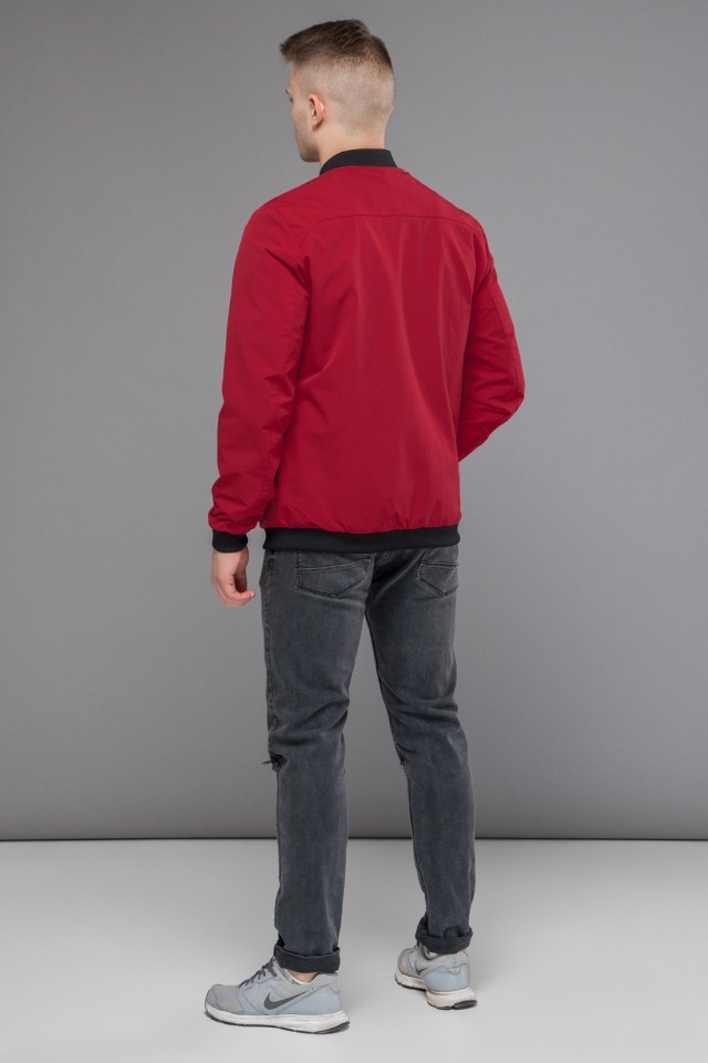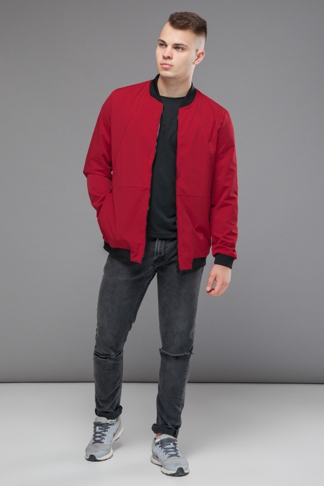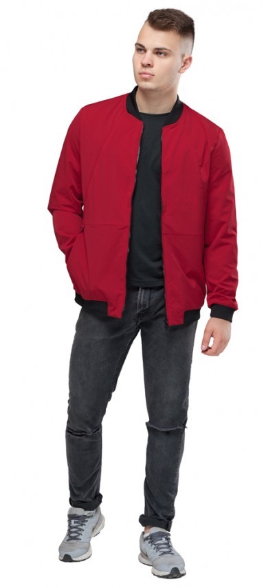 Бомбер молодежный осенне-весенний красного цвета для мужчин модель 43755