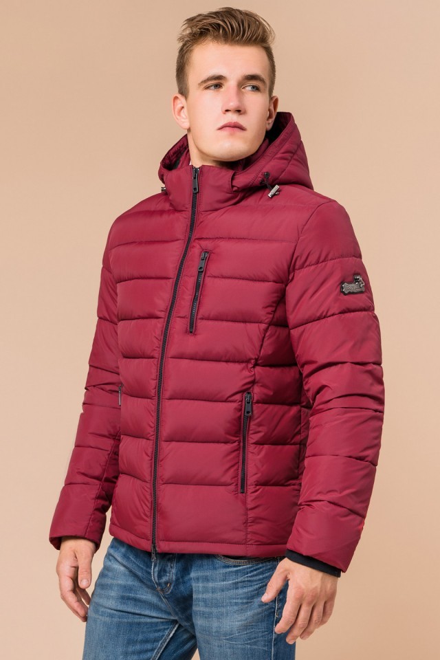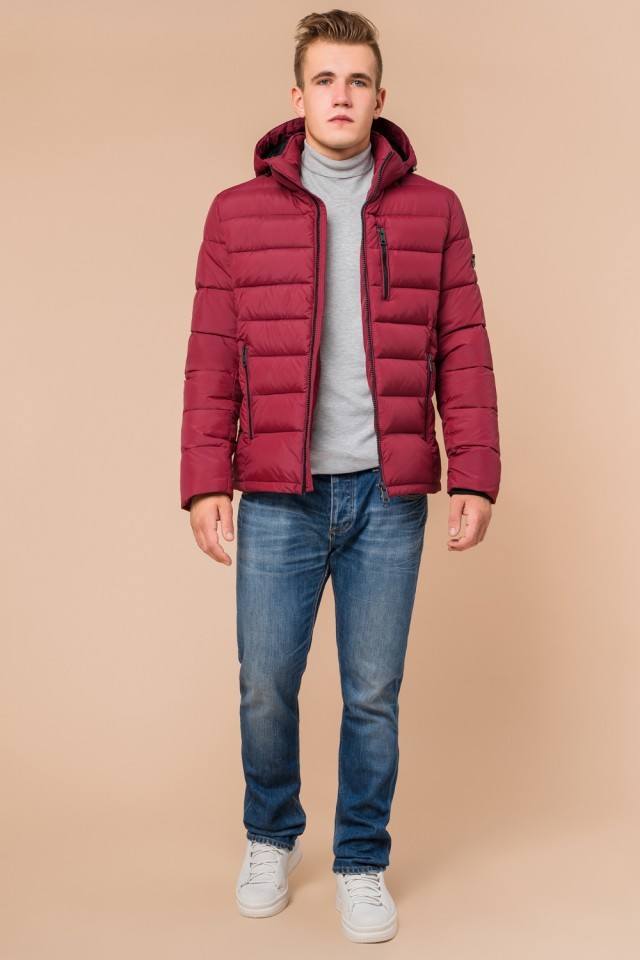 Бордовая зимняя куртка оригинального дизайна мужская модель 36450