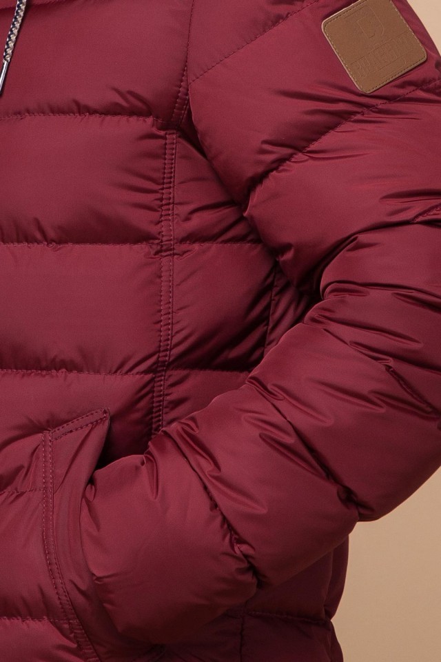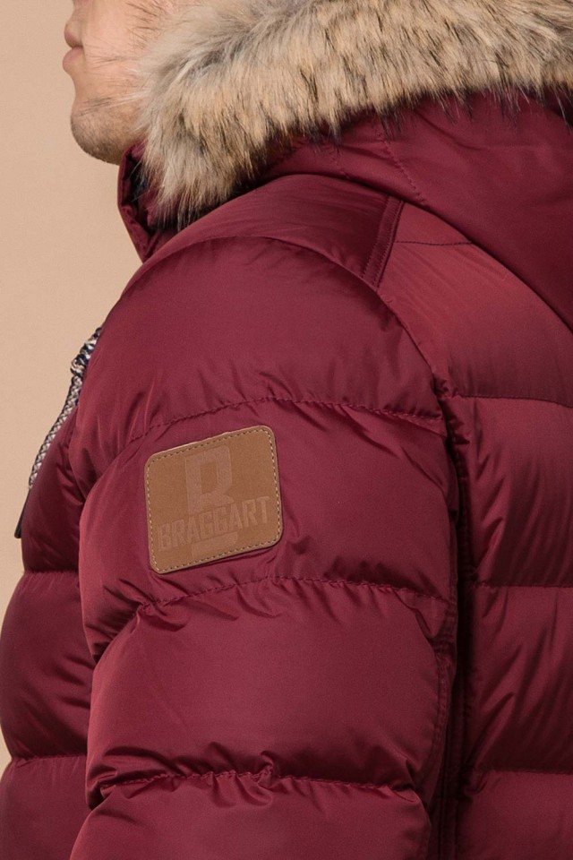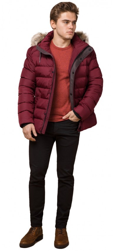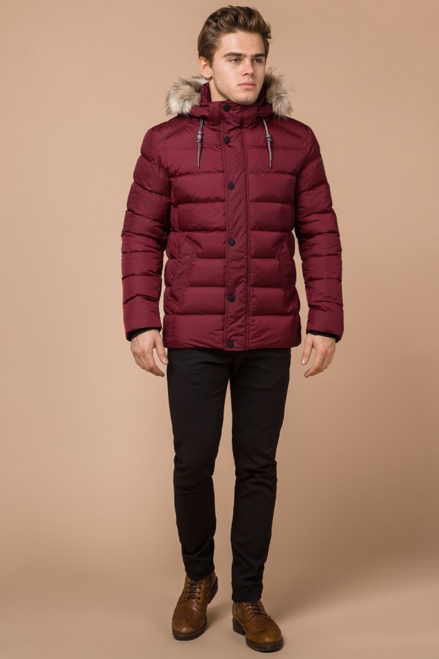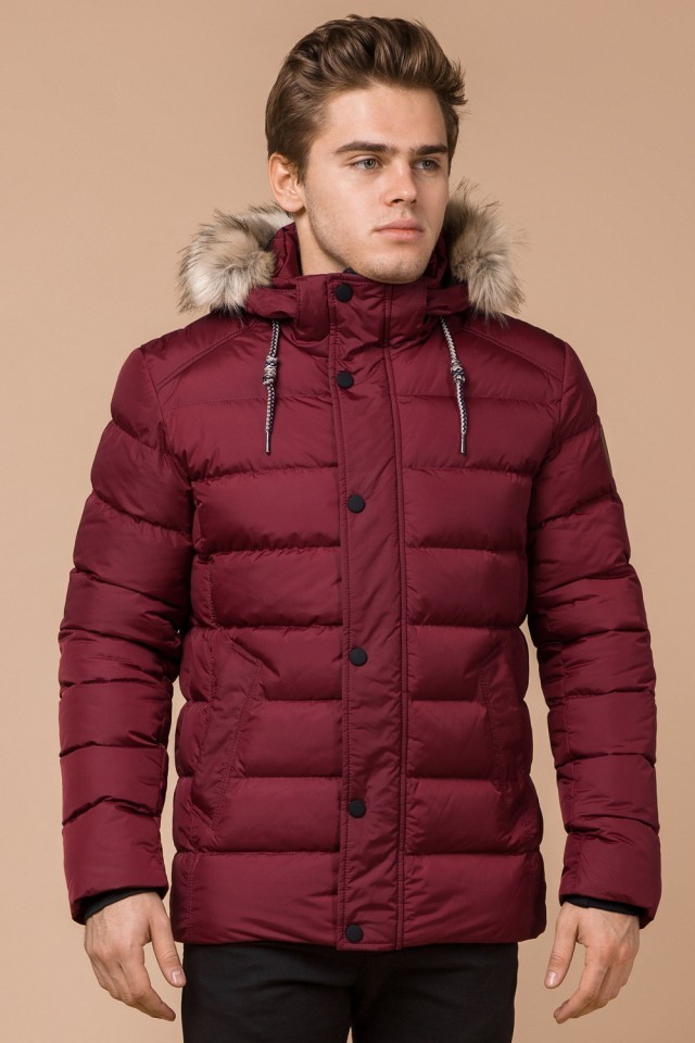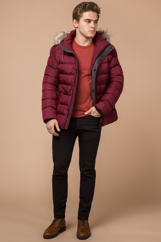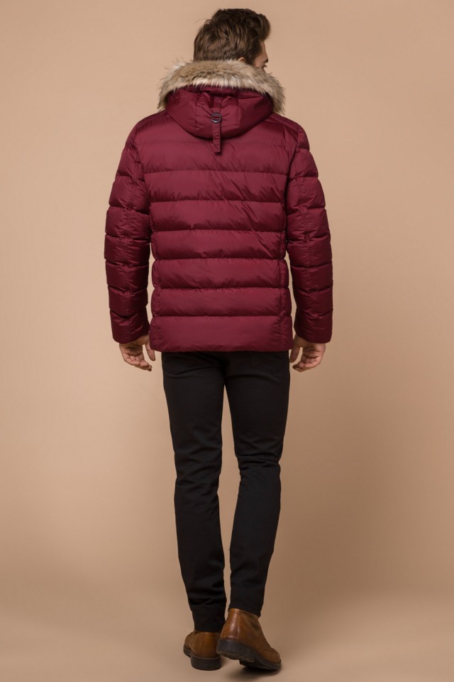 Бордовая зимняя куртка с меховой опушкой мужская модель 16115