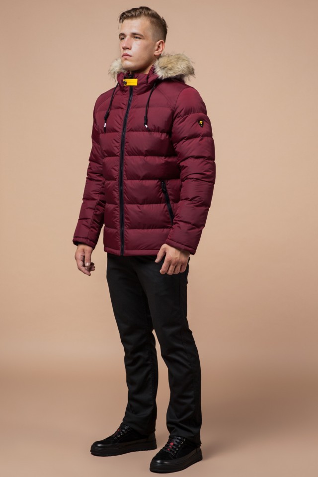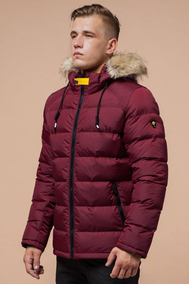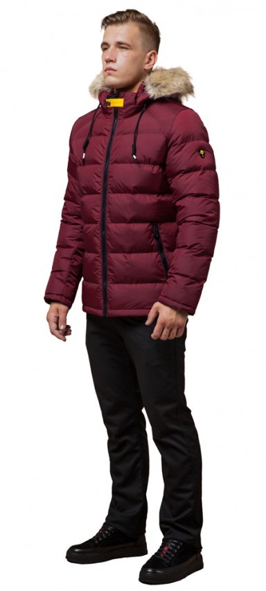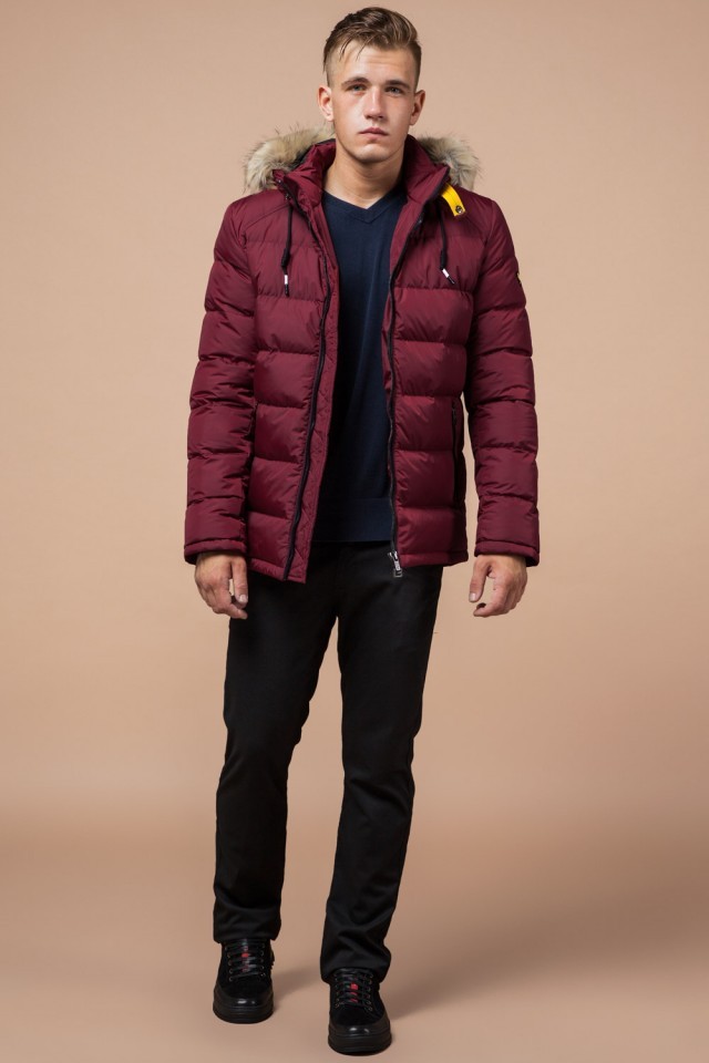 Бордово-черная куртка для мужчин зимняя модель 38268