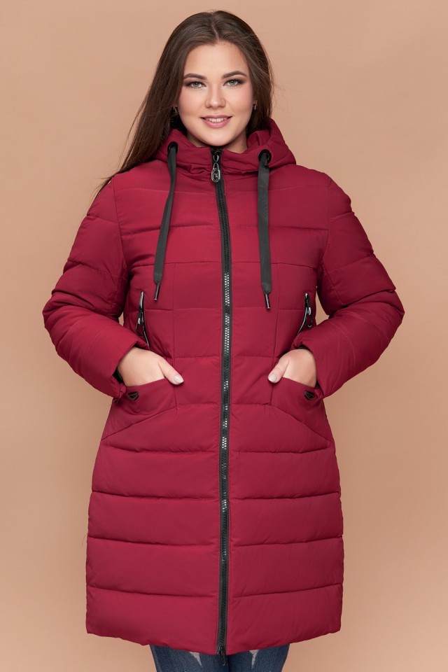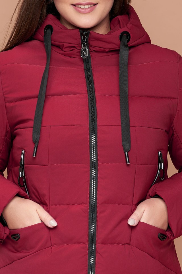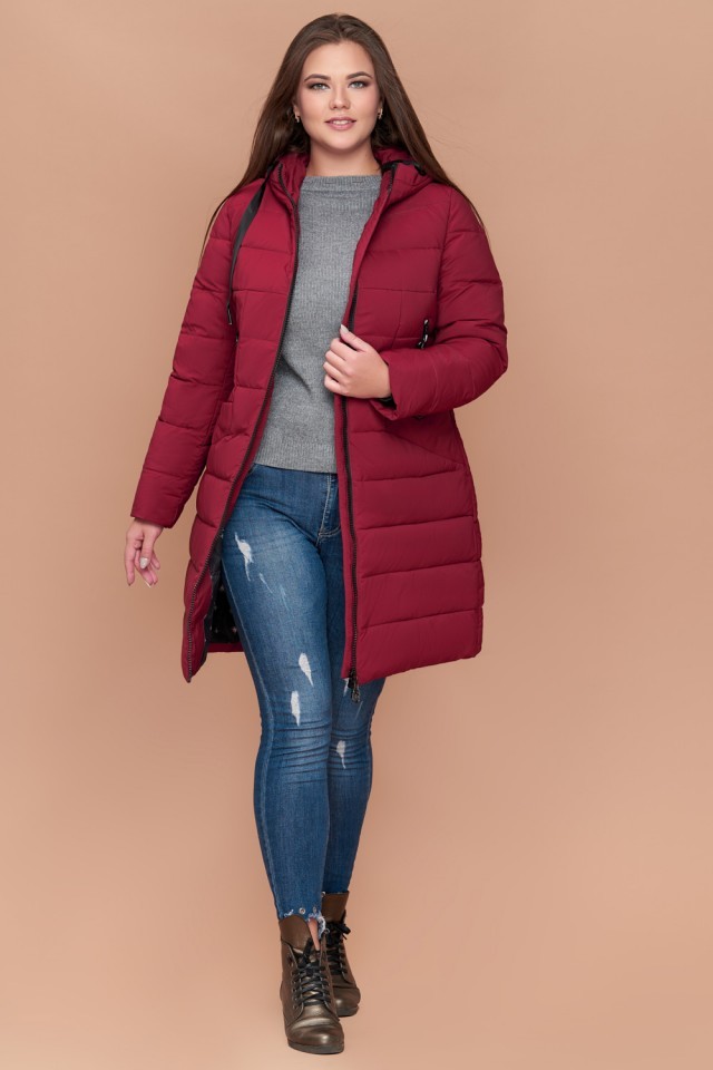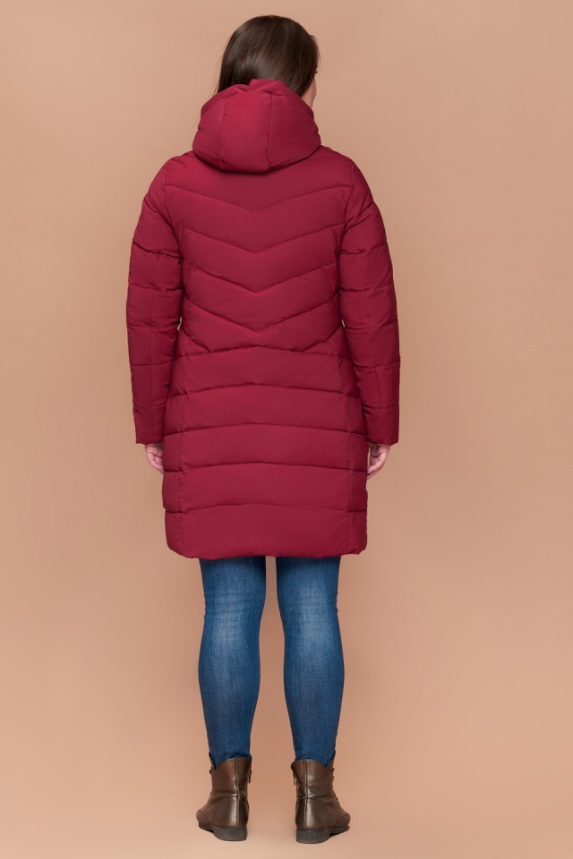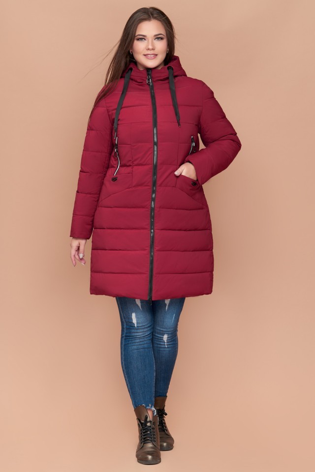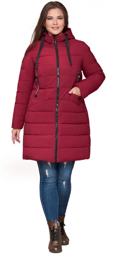 Бордовый пуховик на зиму женский большого размера модель 25275