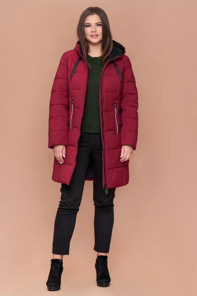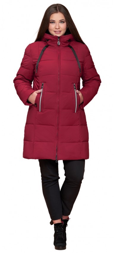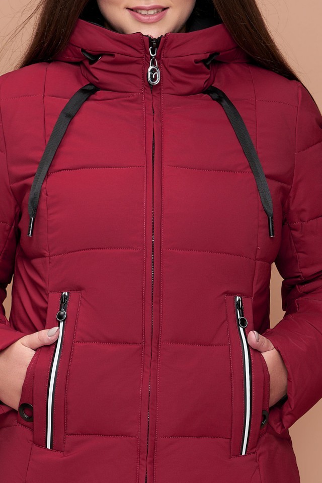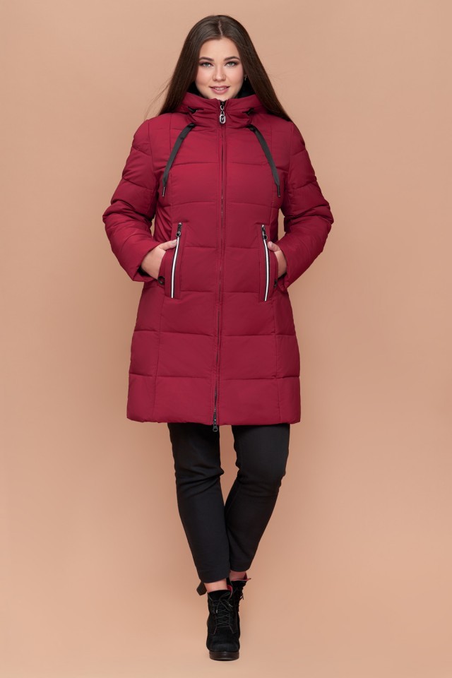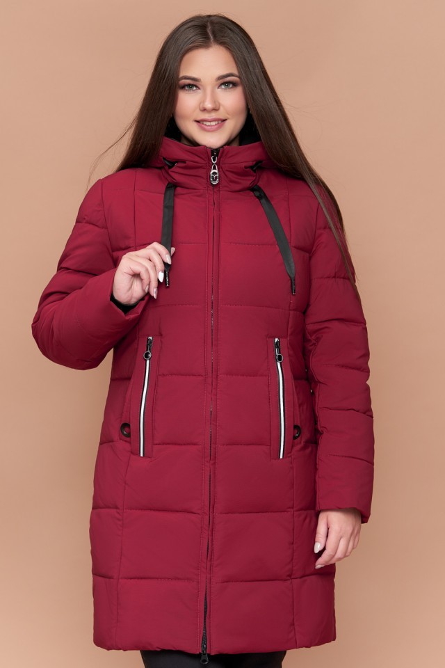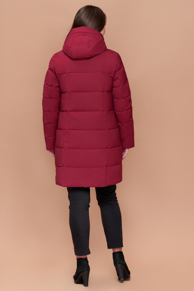 Бордовый зимний женский пуховик большого размера модель 25175