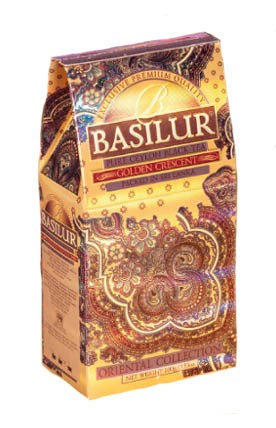 Чай Basilur Золотой Месяц из Восточной коллекции — это черный цейлонский листовой чай Pekoe. В давние времена западные торговцы пользовались термином "Пеко" для обозначения нераспущенного листочка чайной почки и пары листочков, что находятся под ней. На сегодня это определение используют для маркировки элитных чаев. В состав чая Золотой месяц входят вторые от почки листья. Листья, которые целый год созревают на чайных кустах в уникальных цейлонских климатических условиях, придают чаю Золотой месяц неповторимый вкус и яркий аромат. В листьях "Пеко" содержится больше танина, дубильных веществ и меньше кофеина. Черный чай обладает традиционным вкусом, дает светлый янтарный настой и слегка горький вкус, чем завоевал любовь многих любителей чая Basilur.