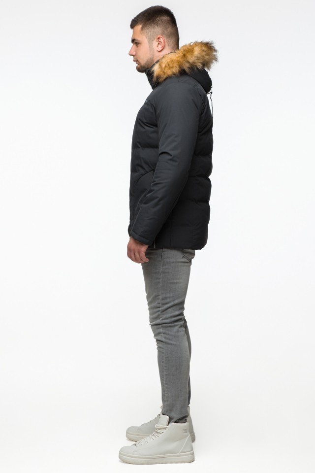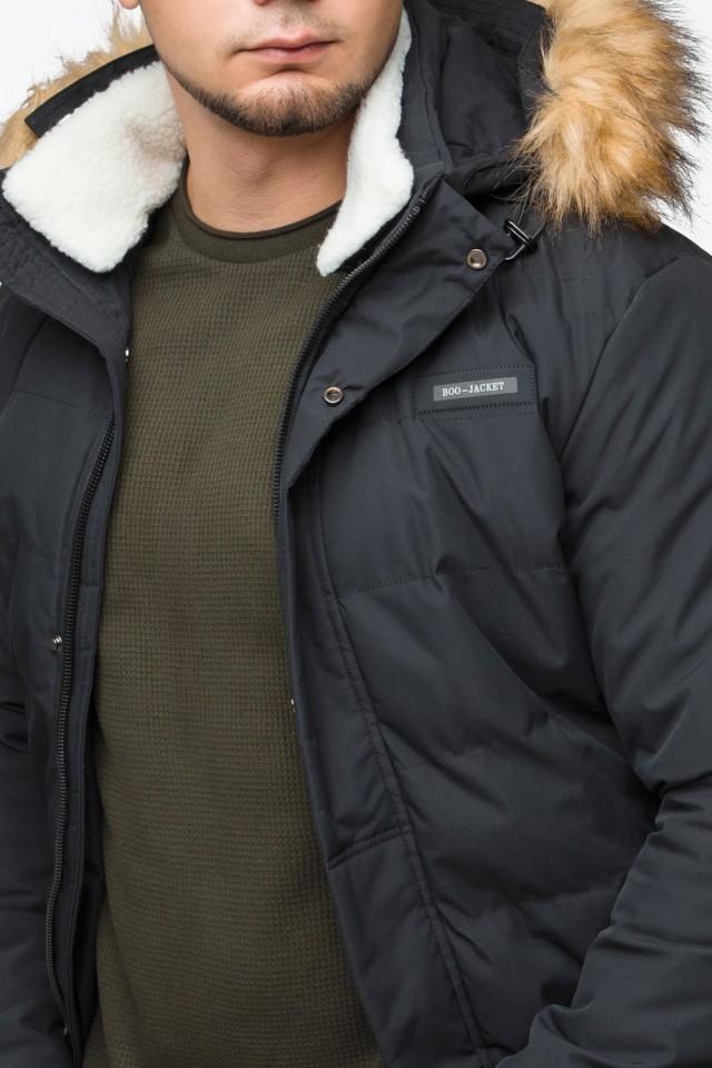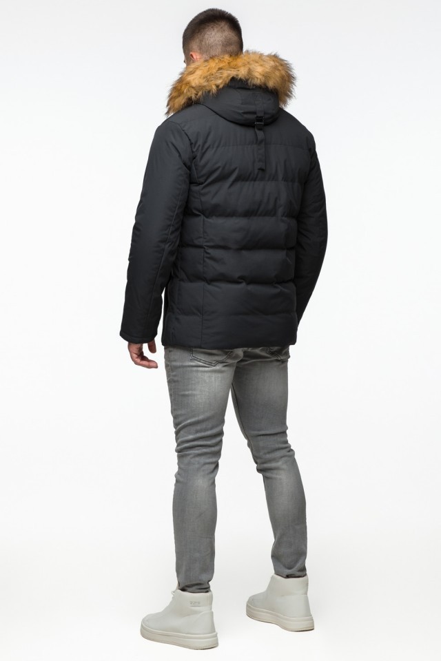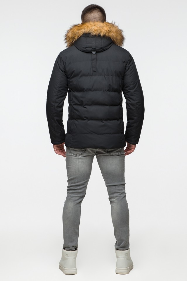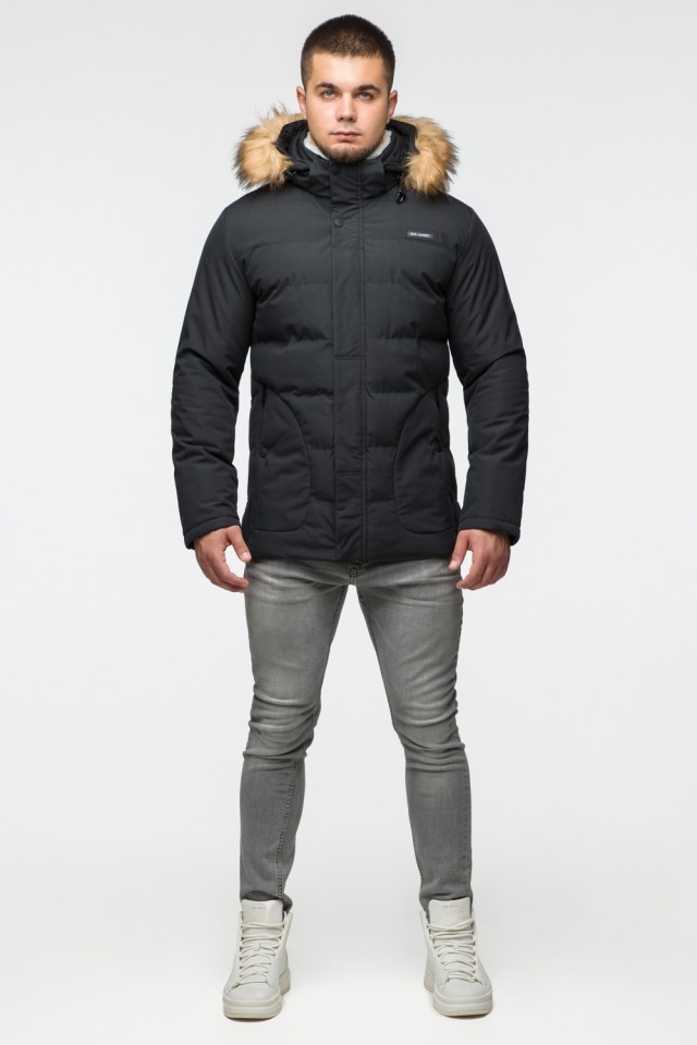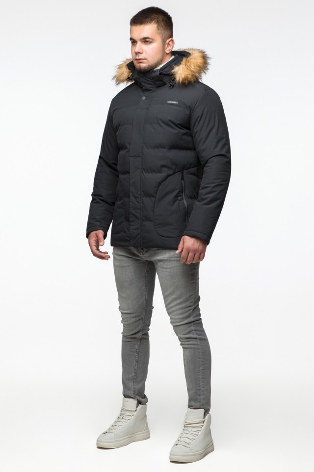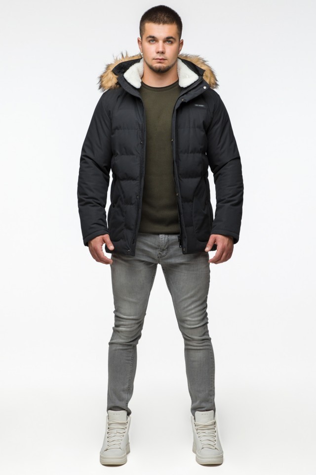 Черная куртка мужская молодежная зимняя с воротником модель 25780