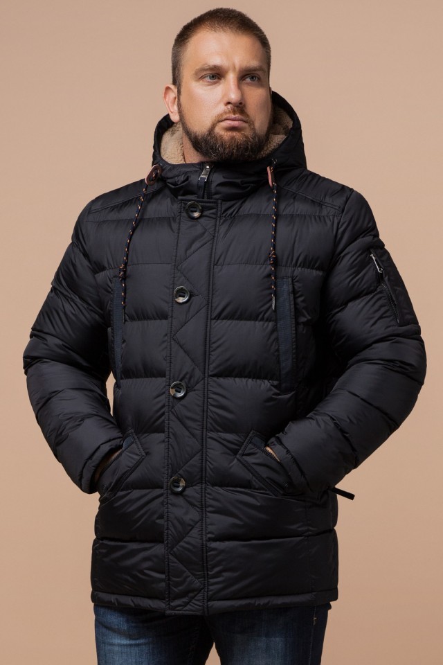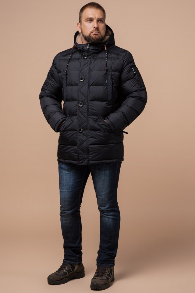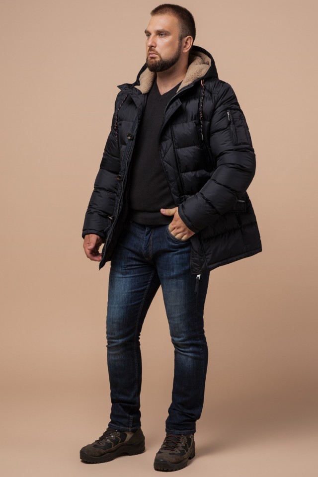 Черная куртка на молнии мужская зимняя модель 26402