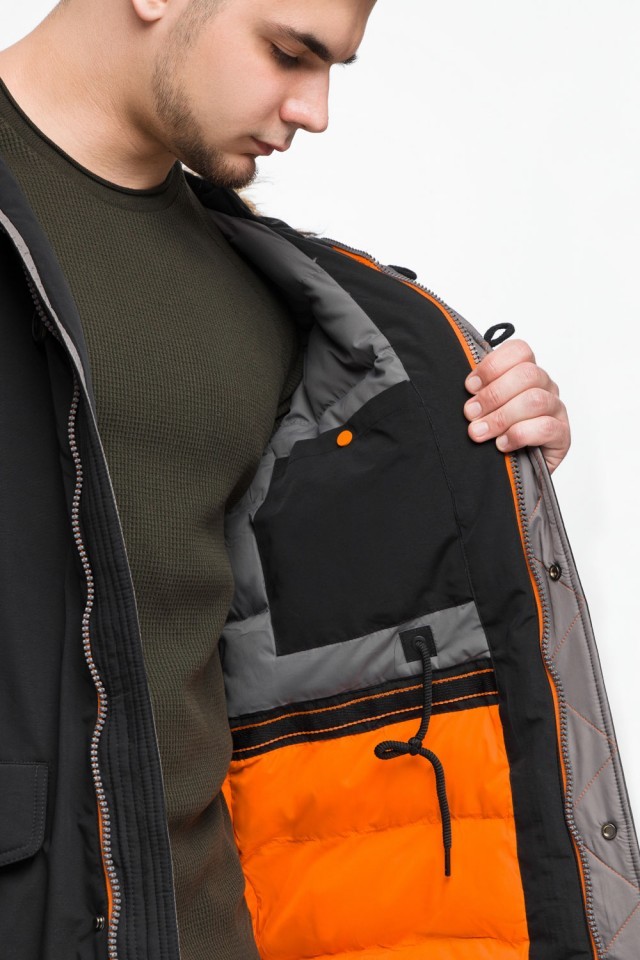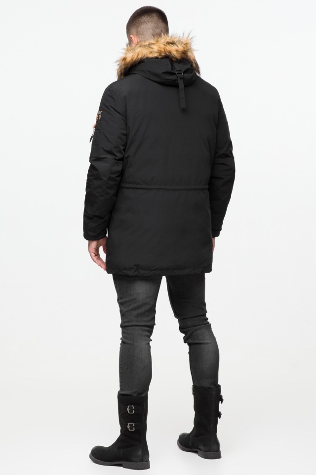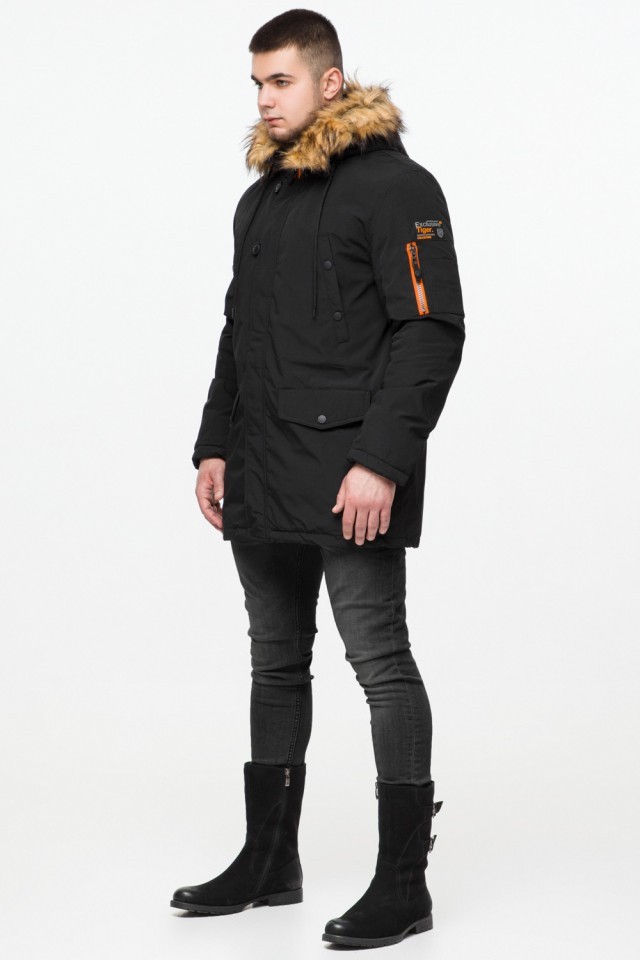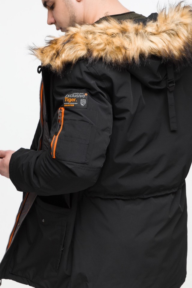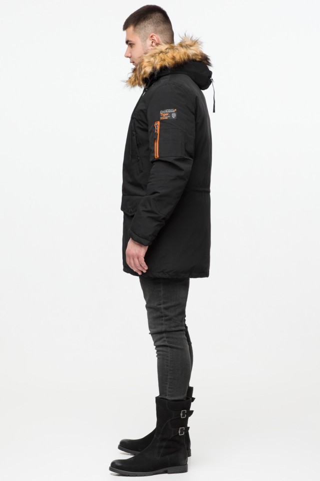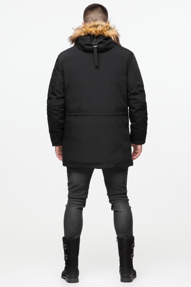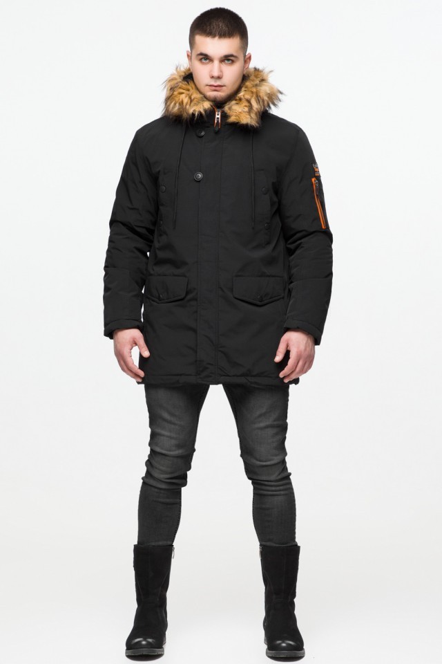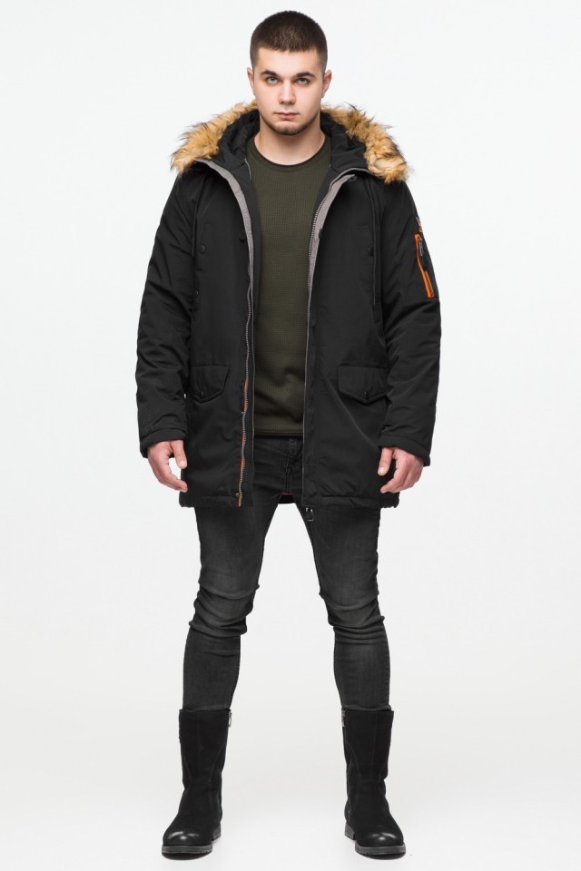Черная молодежная мужская парка с опушкой зимняя модель 25520