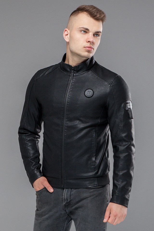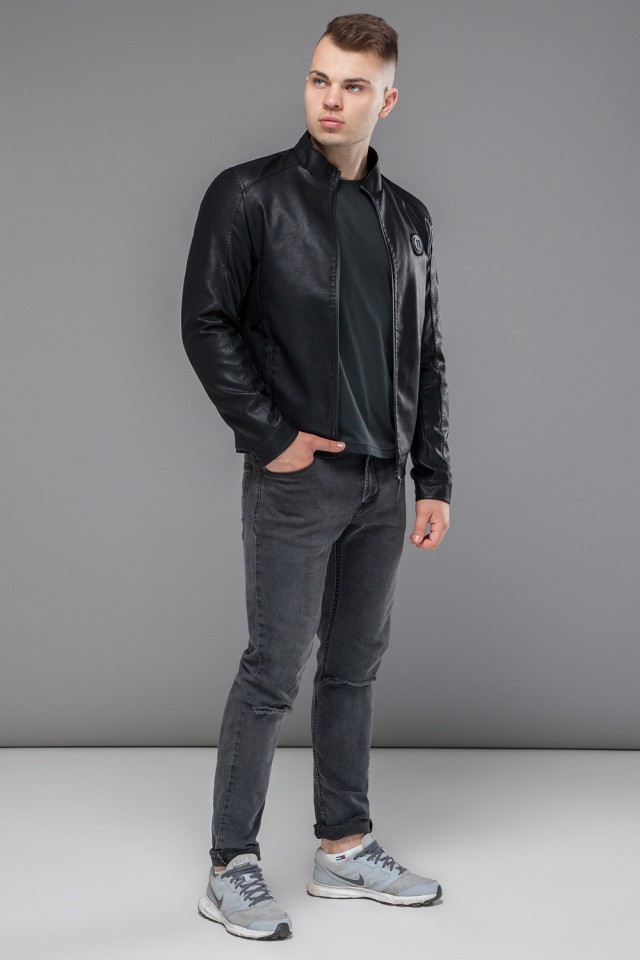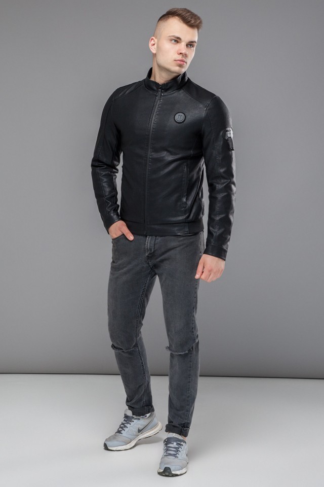 Черная мужская куртка молодежная осенне-весенняя на молнии модель 43663