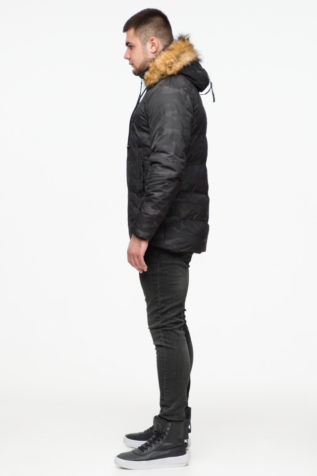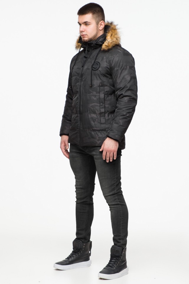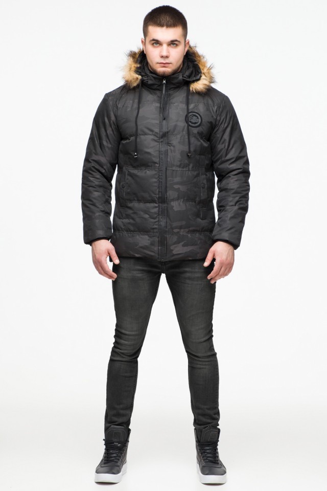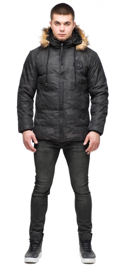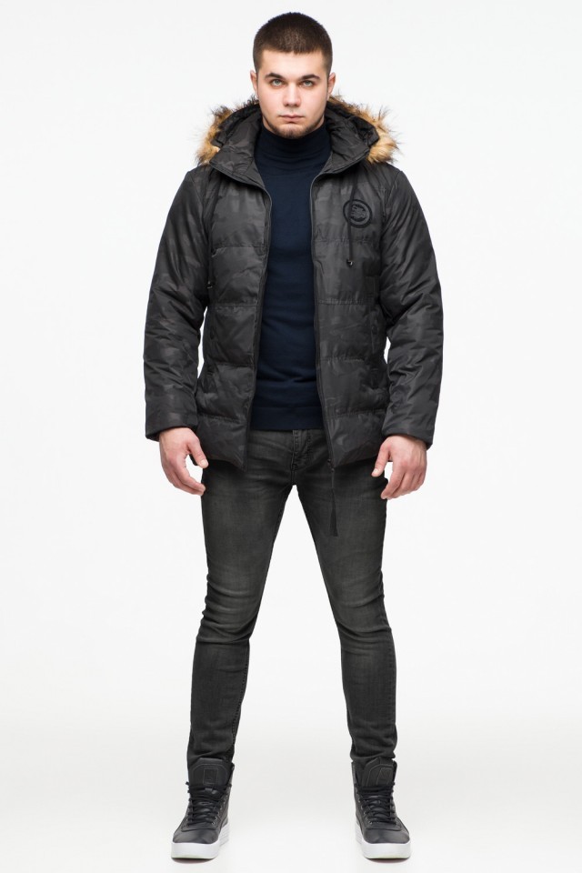 Черная мужская молодежная дизайнерская зимняя куртка модель 25310