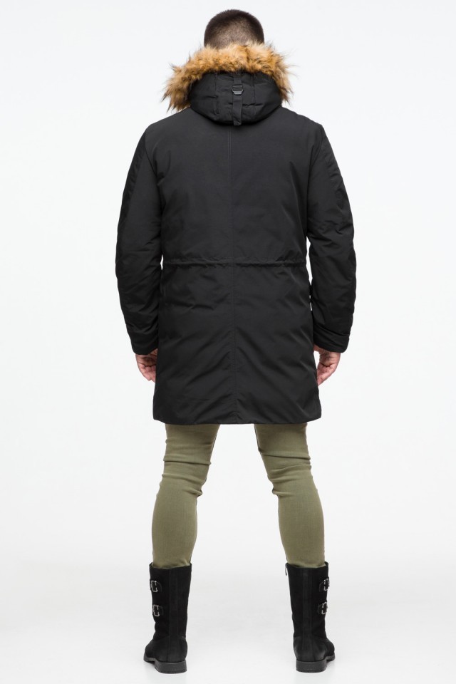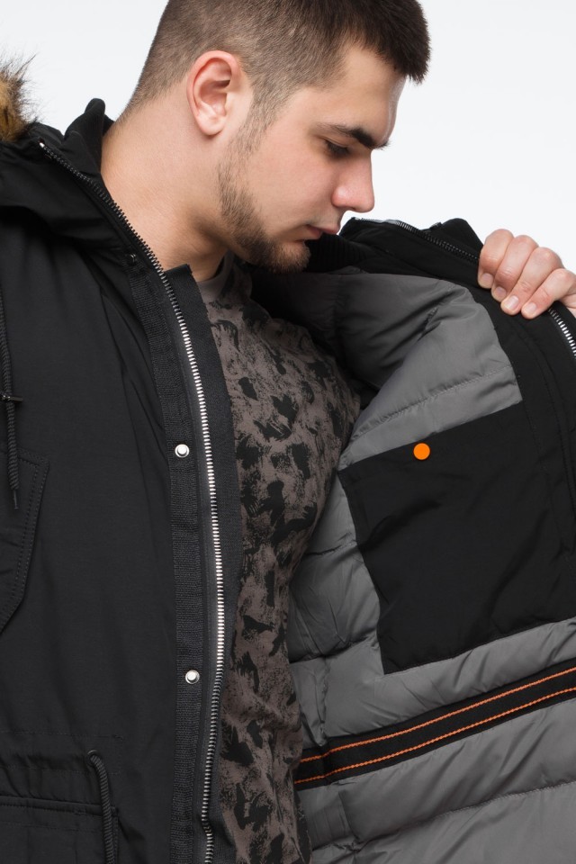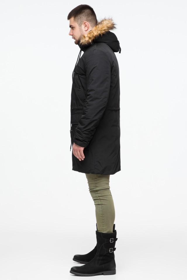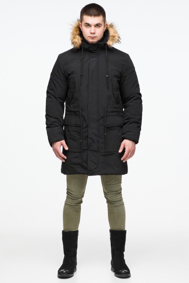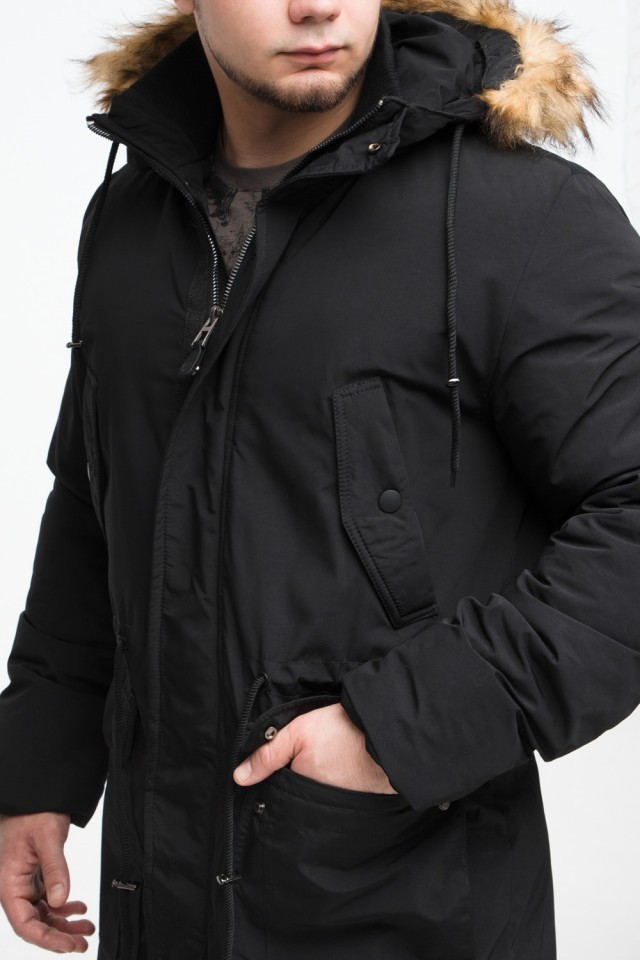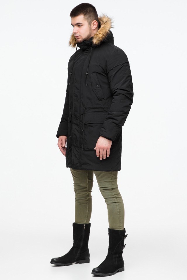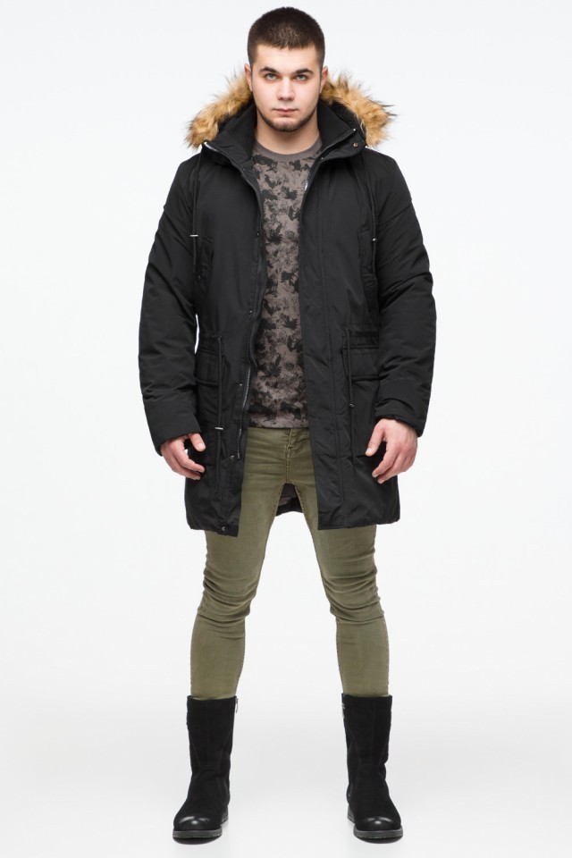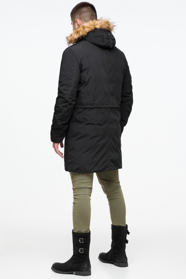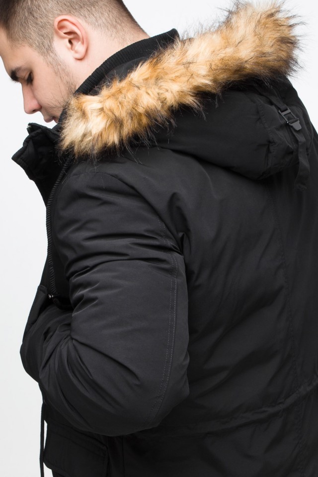 Черная мужская молодежная парка зимняя с опушкой модель 25690