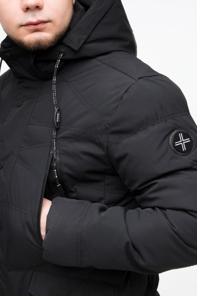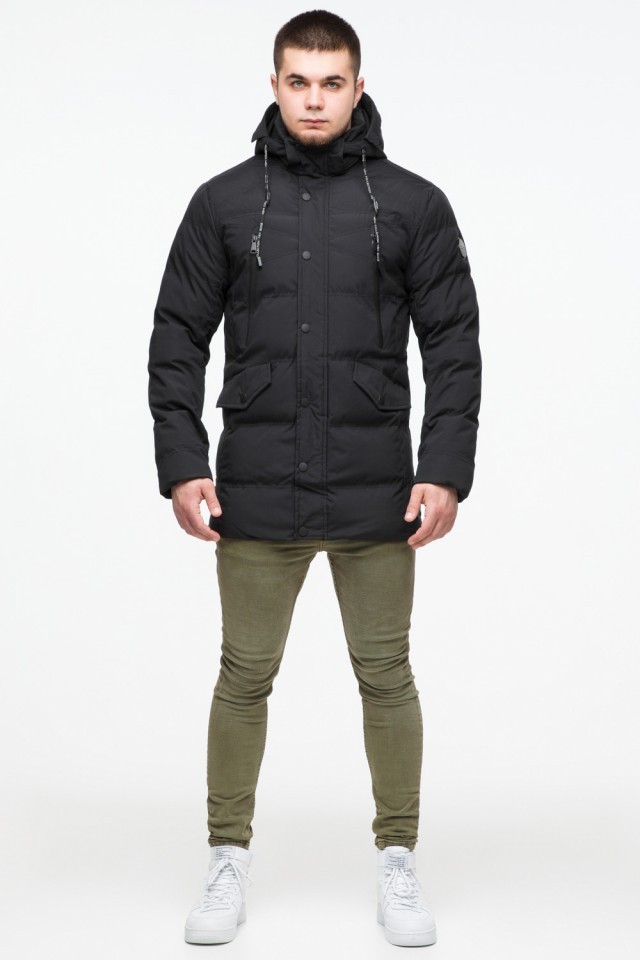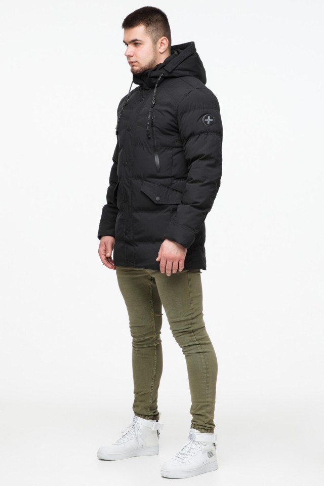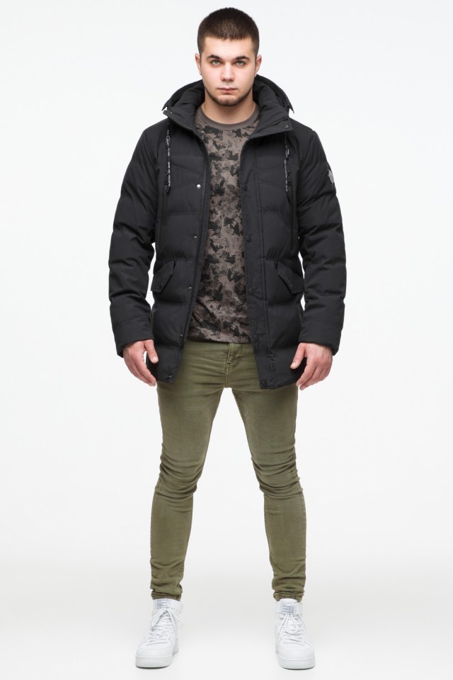 Черная мужская теплая куртка молодежная на зиму модель 25320