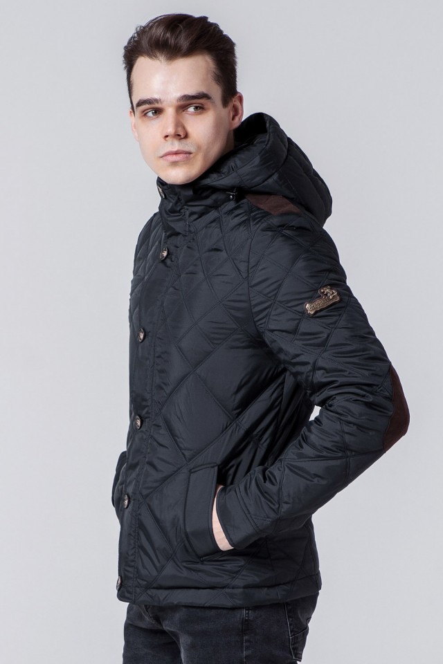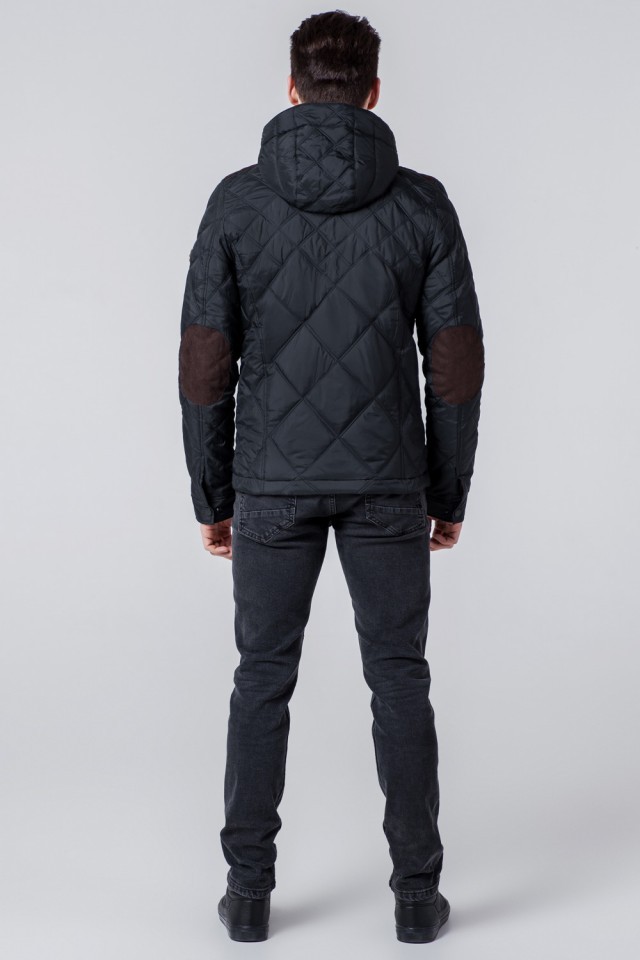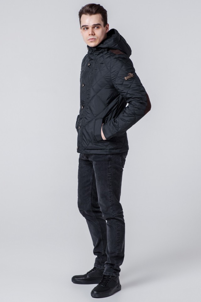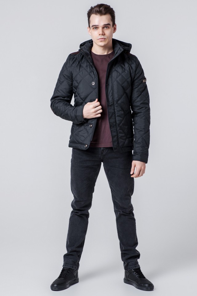 Черная мужская ветровка осенне-весенняя с капюшоном модель 1268