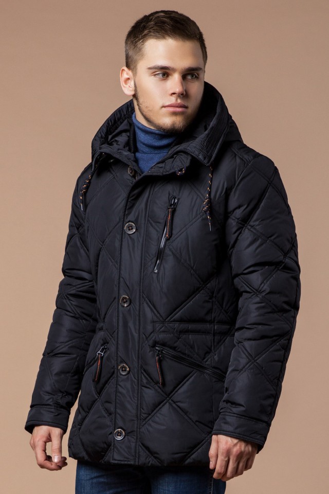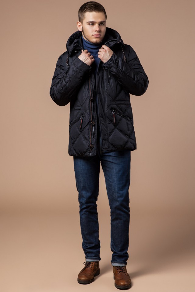 Черная мужская зимняя куртка с капюшоном модель 12481