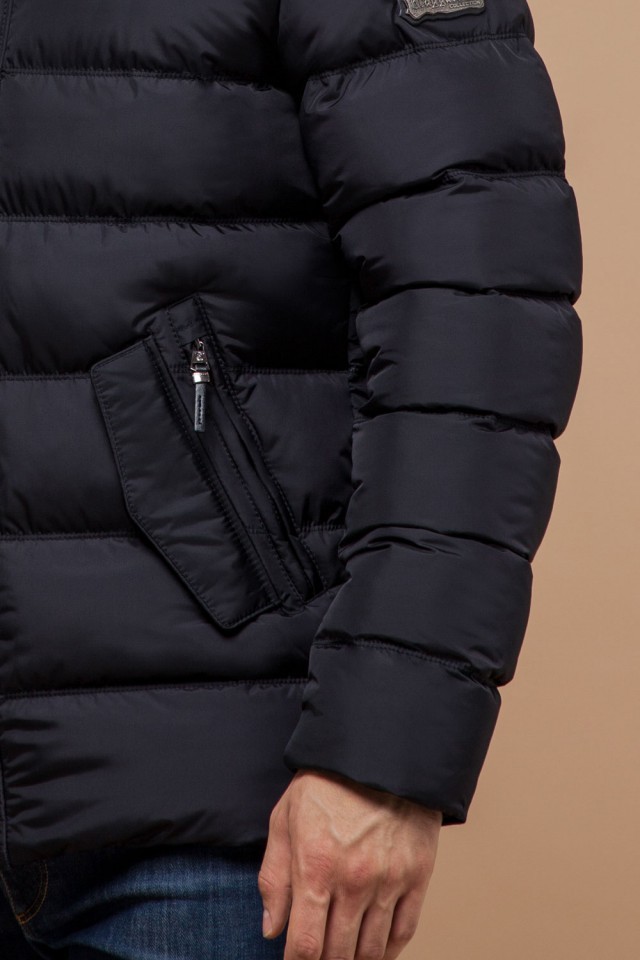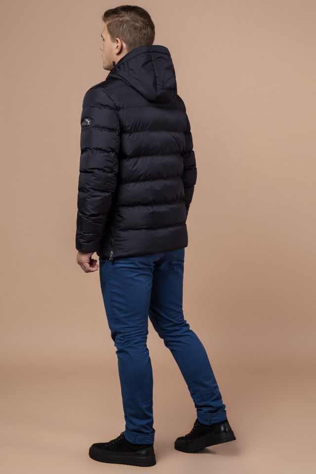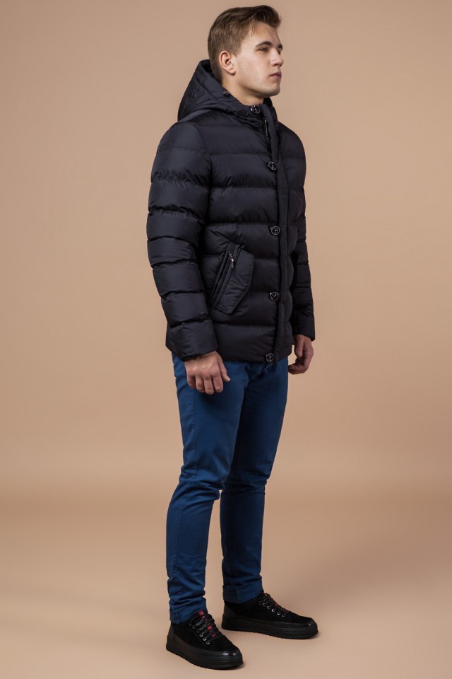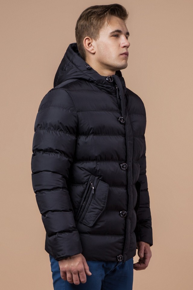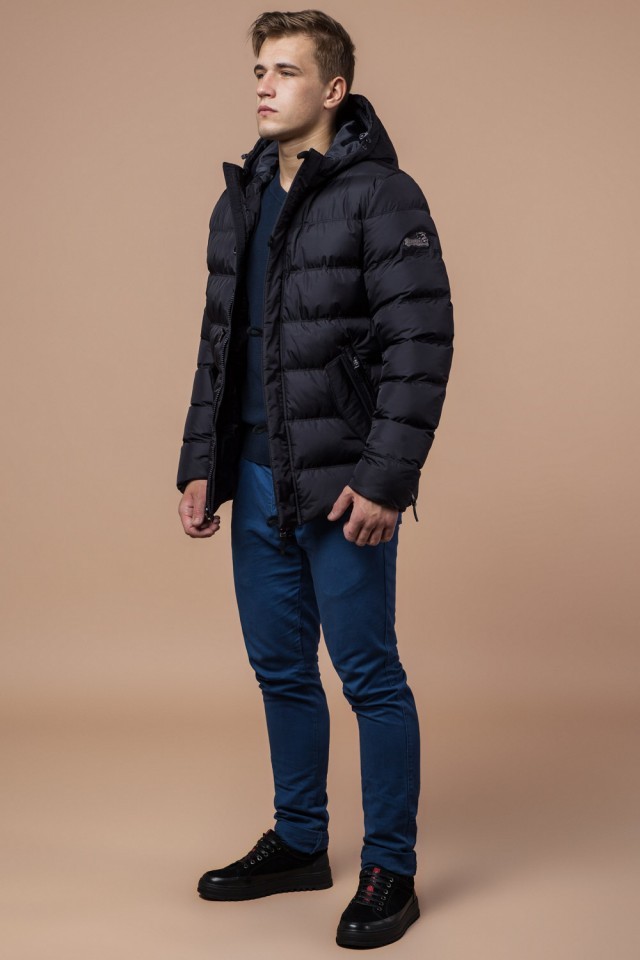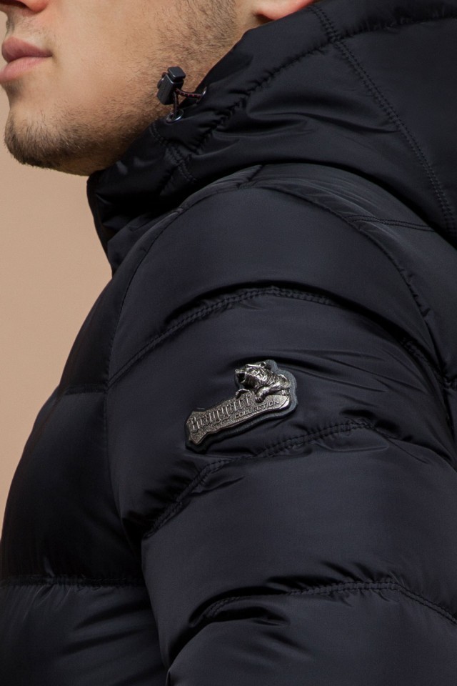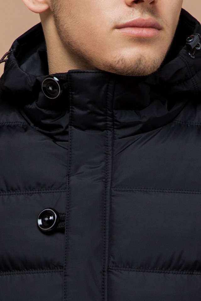 Черная мужская зимняя куртка с ветрозащитной планкой модель 30380