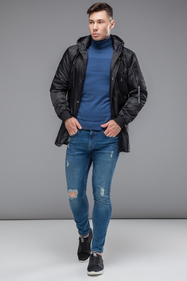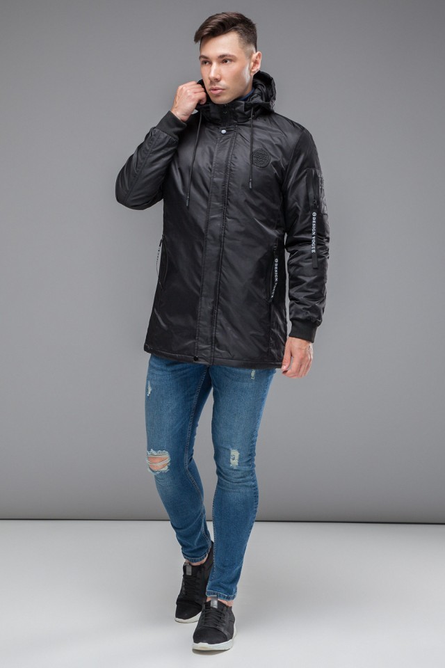Черная парка осенне-весенняя молодежная мужская модель 20595