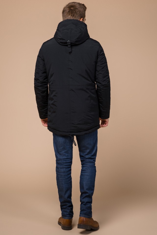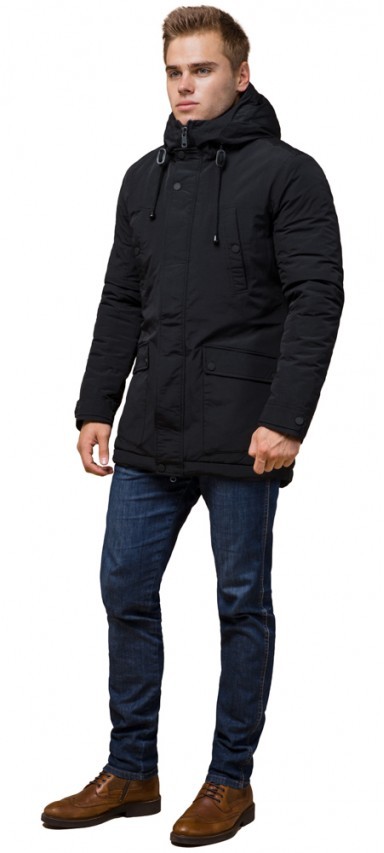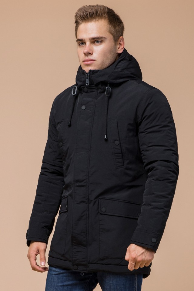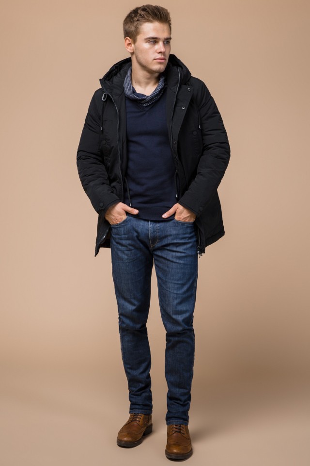 Черная зимняя мужская парка оригинального дизайна модель 36640