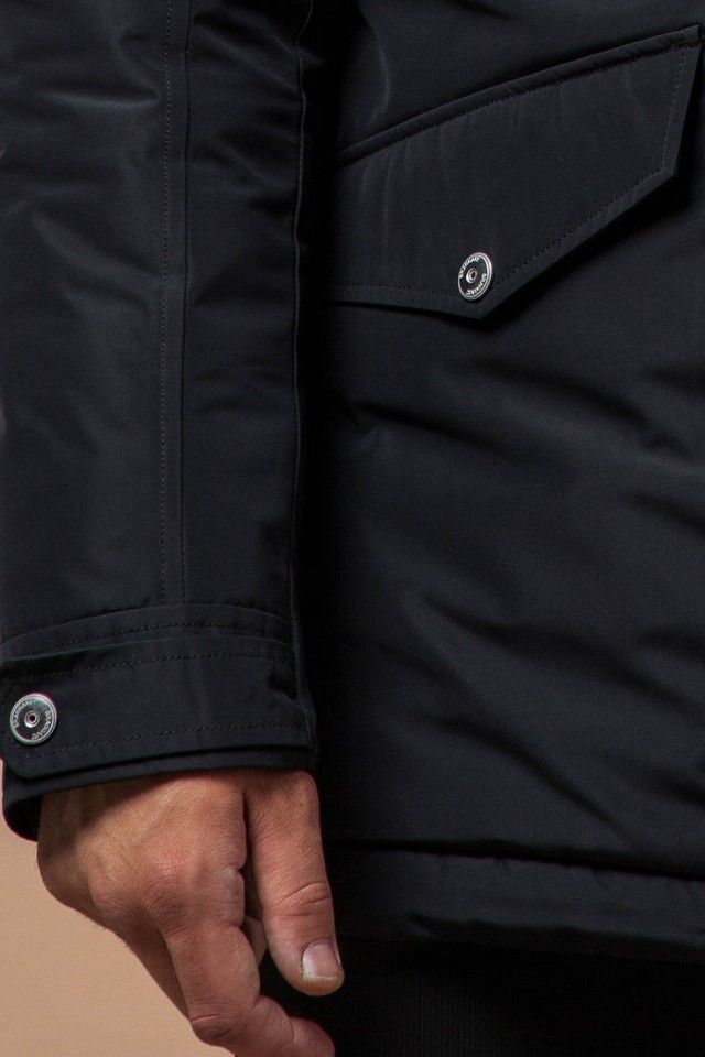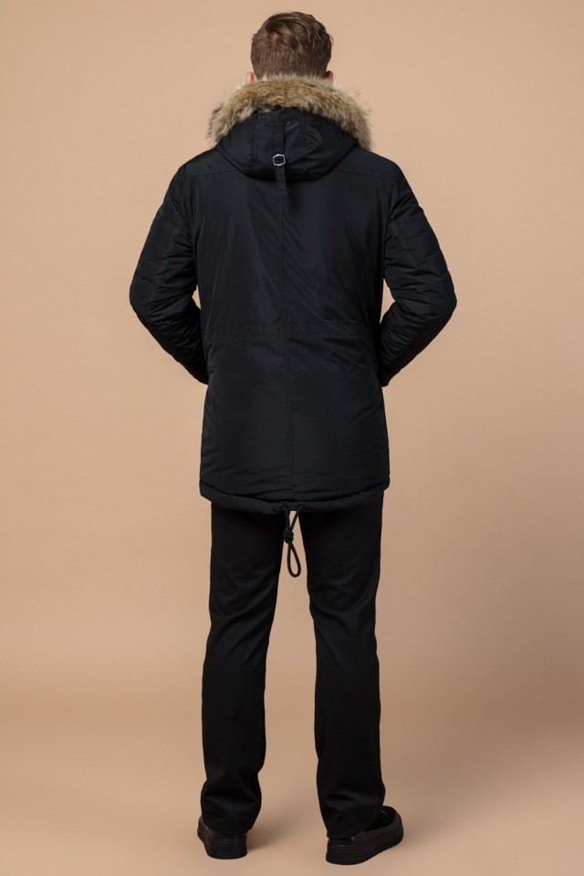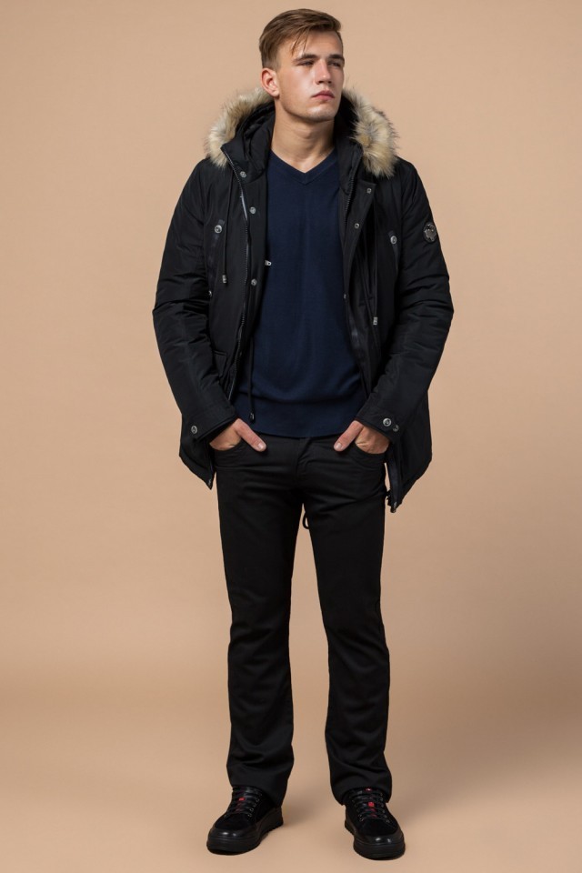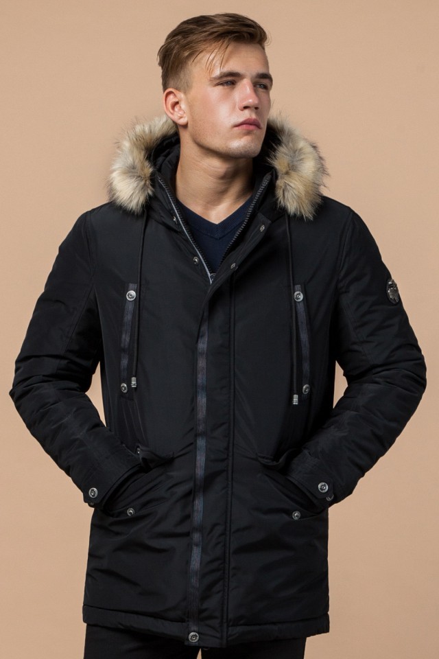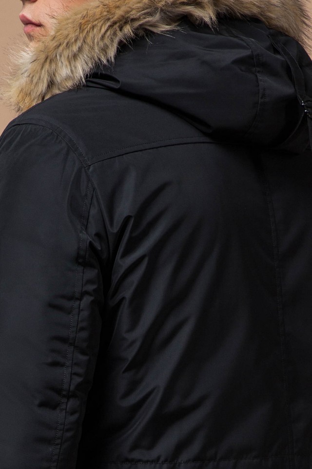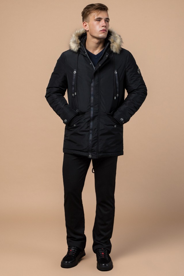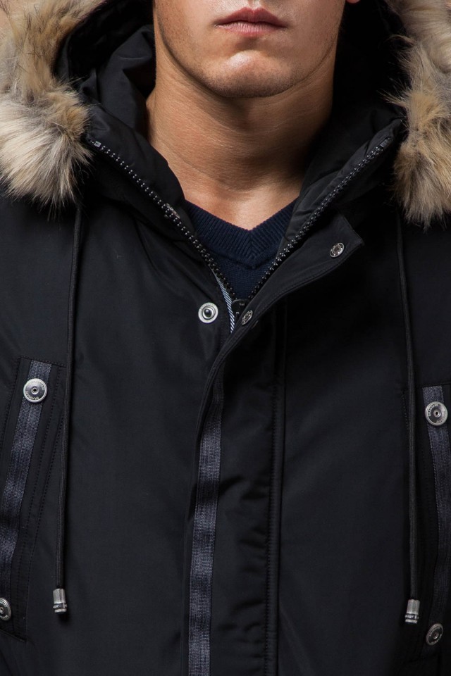 Черная зимняя мужская парка с долговечной фурнитурой модель 27830