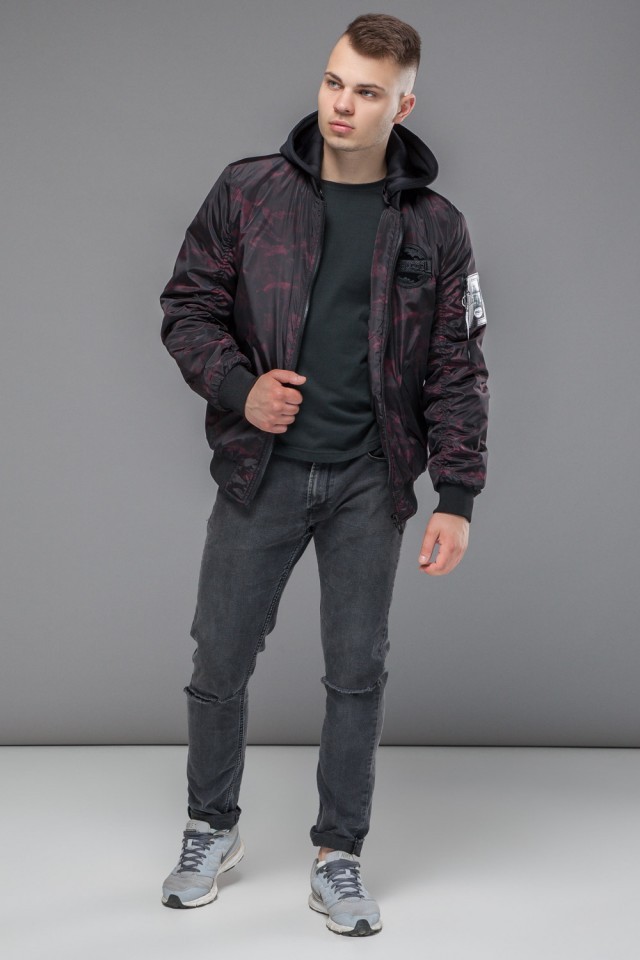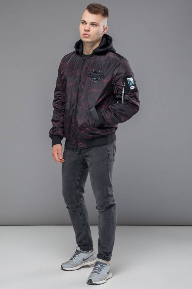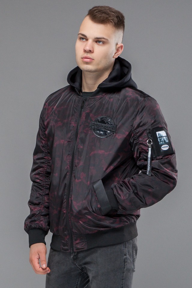 Черно-красный бомбер осенне-весенний молодежный мужской модель 30155