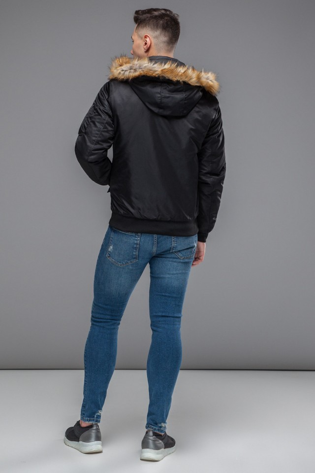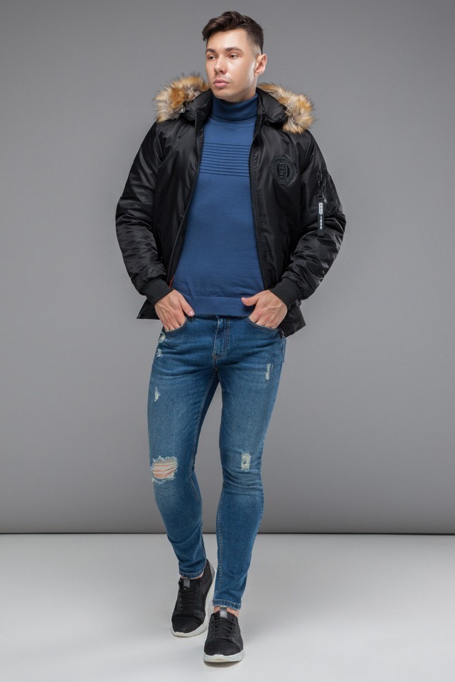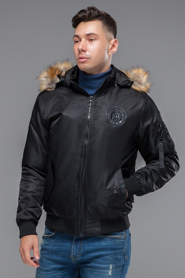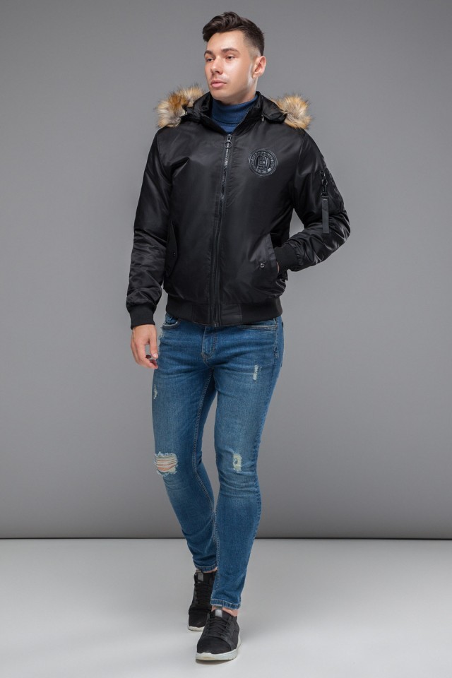 Черный бомбер осенне-весенний молодежный для мужчин модель 46575