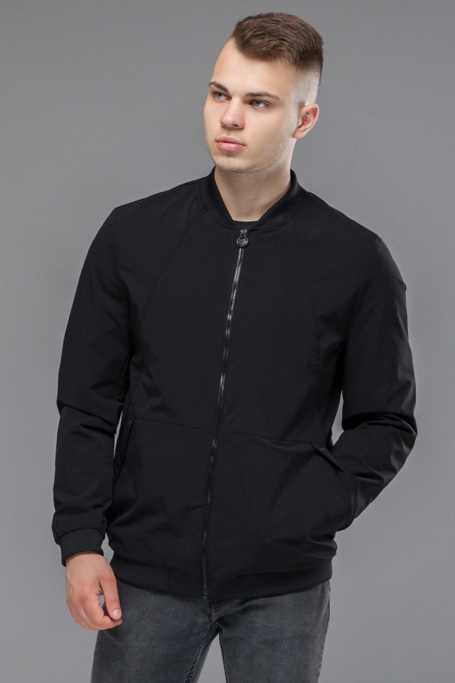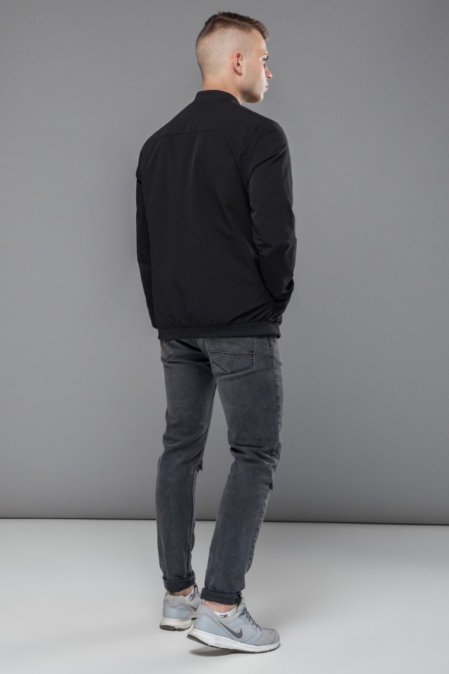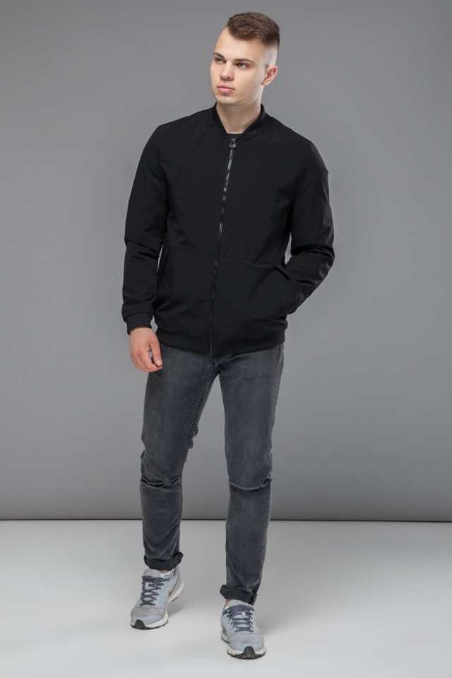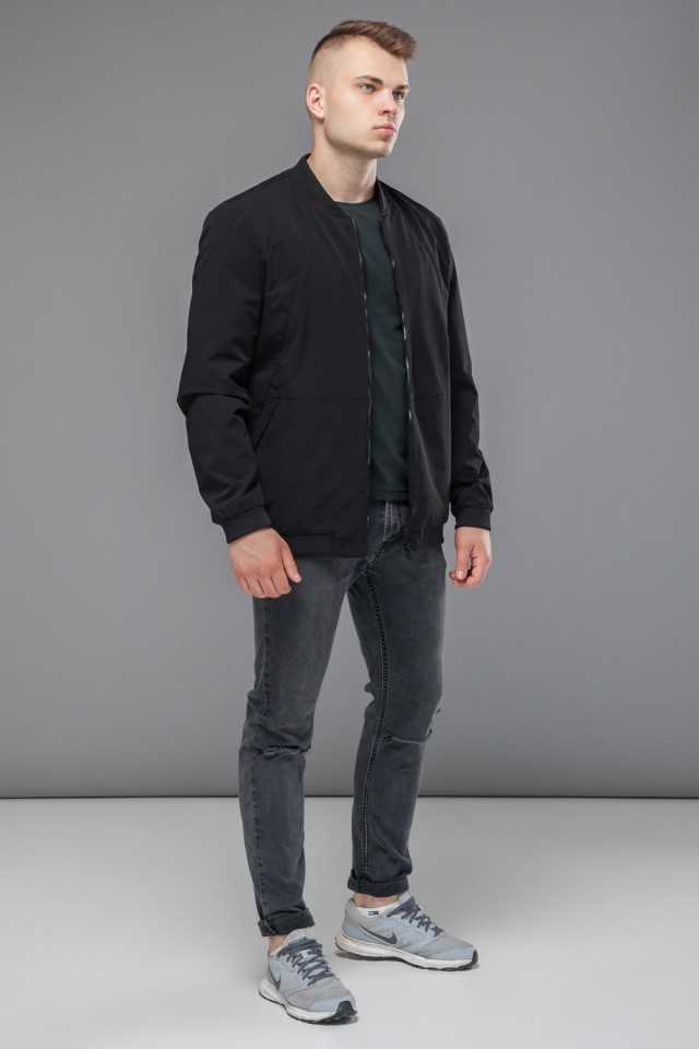 Черный мужской молодежный бомбер осенне-весенний короткий модель 43755