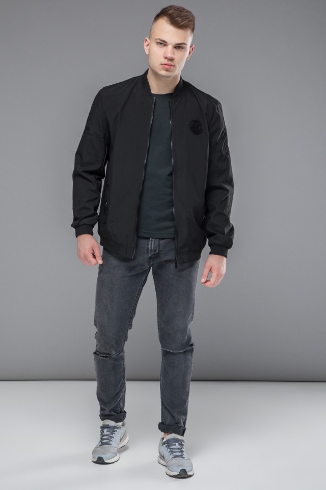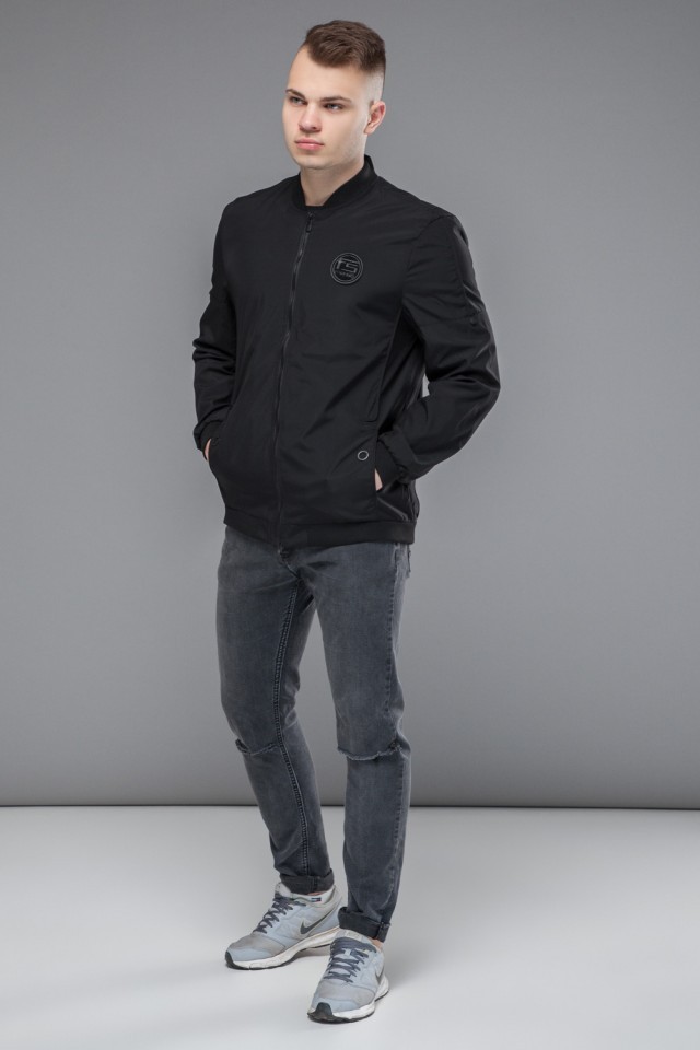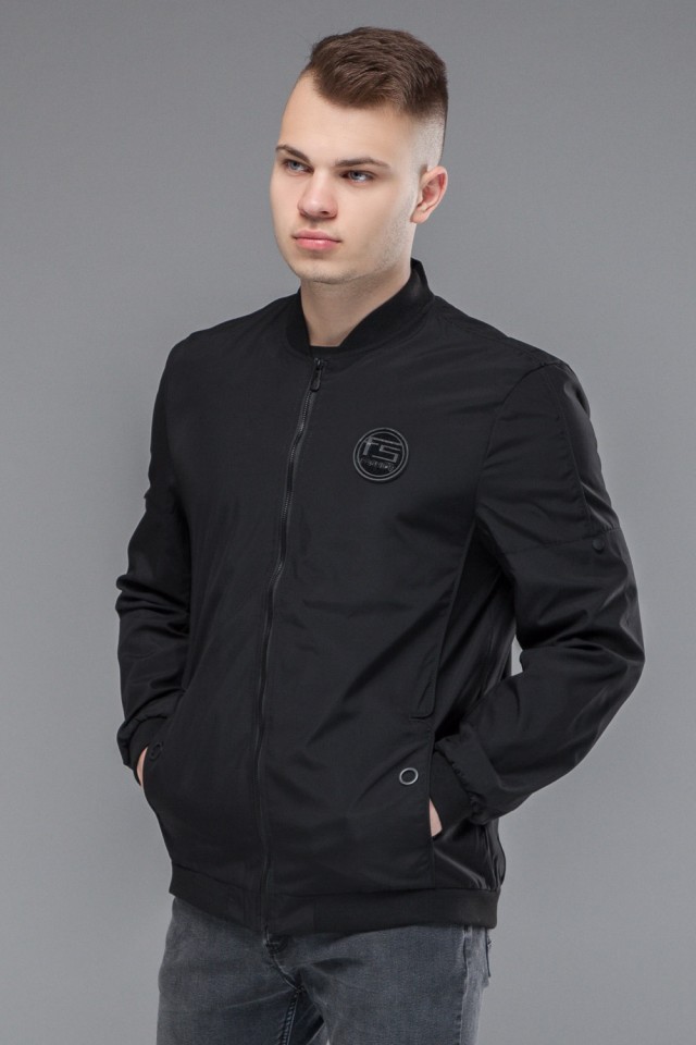Черный мужской осенне-весенний молодежный бомбер модель 44525