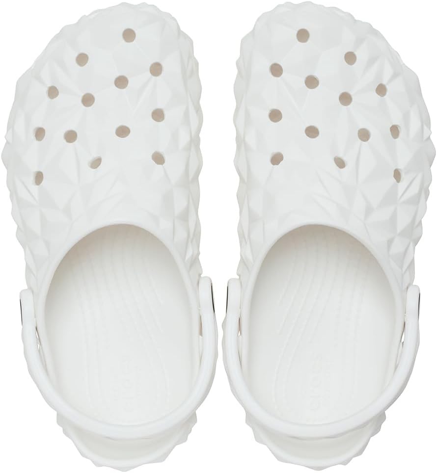 Crocs Classic Geometric White — это обновлённая версия культовой модели Crocs Classic, представлена в 2023 году. Модель получила новый внешний вид благодаря геометрической текстуре, сохранив при этом легендарный комфорт. Белый цвет — вічна класика, яка підходить під будь-який образ і виглядає охайно в будь-яких умовах.
