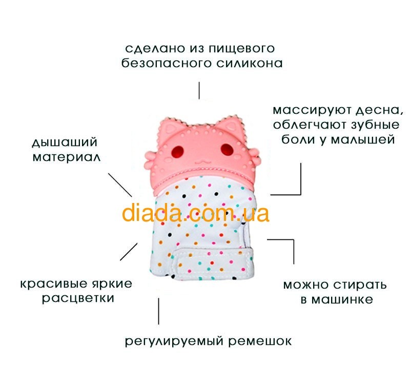 Детский прорезыватель для зубов розовый грызунок "Котик"