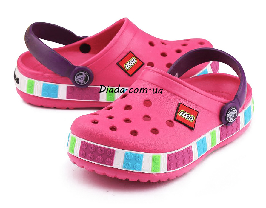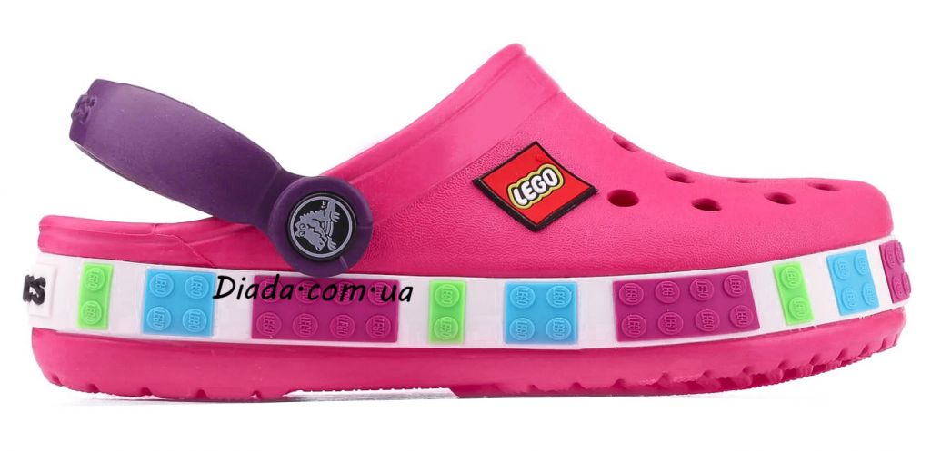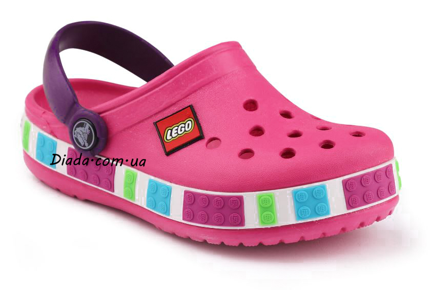 Детские сабо Crocs Kids' LEGO Fuchsia малиновые с фиолетовым ремешком