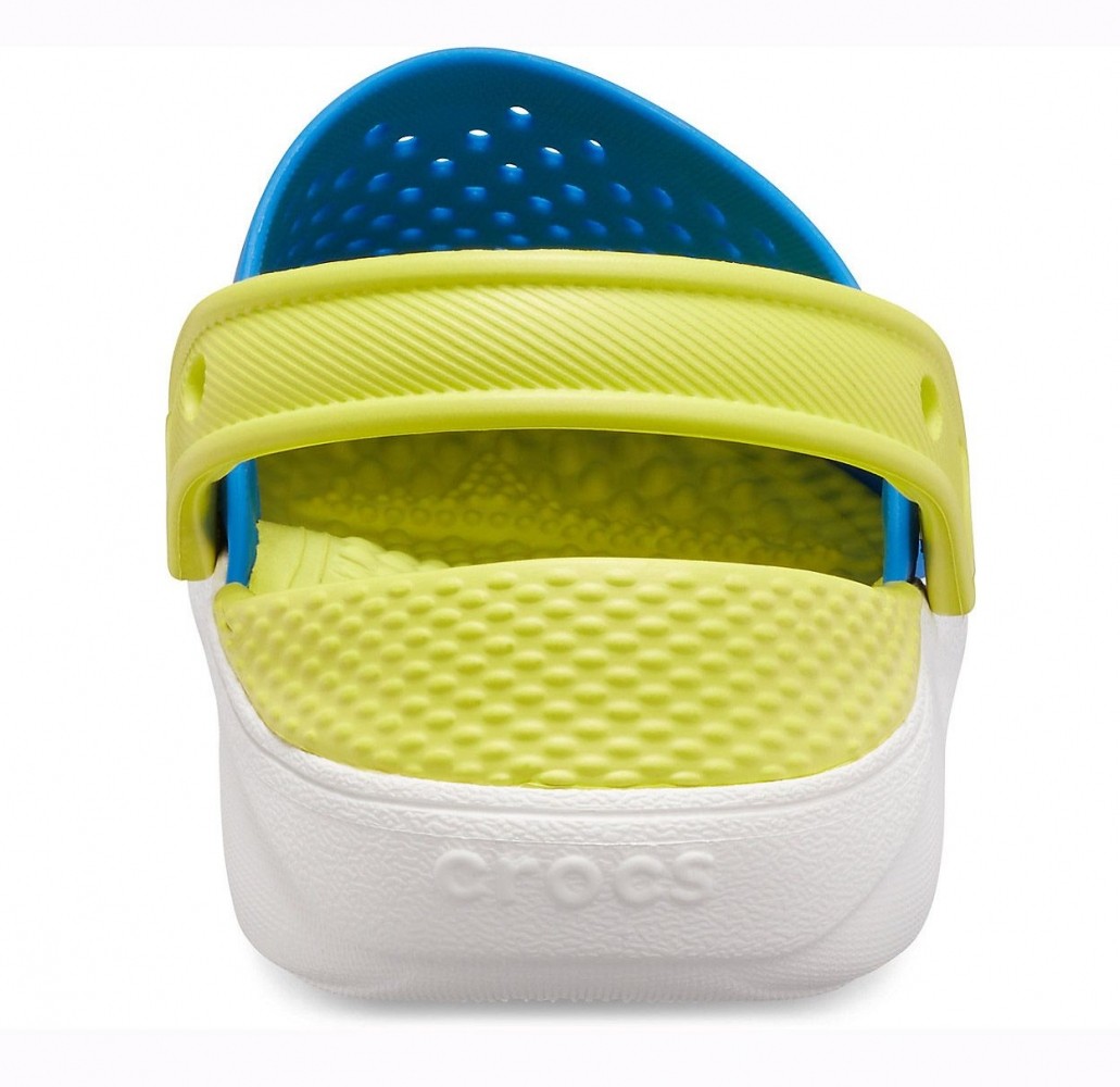 Kids Crocs LiteRide Clog Bright Cobalt/Citrus – это яркие и комфортные детские вьетнамки, созданные для активных малышей. Основной насыщенный синий оттенок (Bright Cobalt) с акцентом жёлтого (Citrus) превращает эту модель в настоящий хит среди детской обуви.