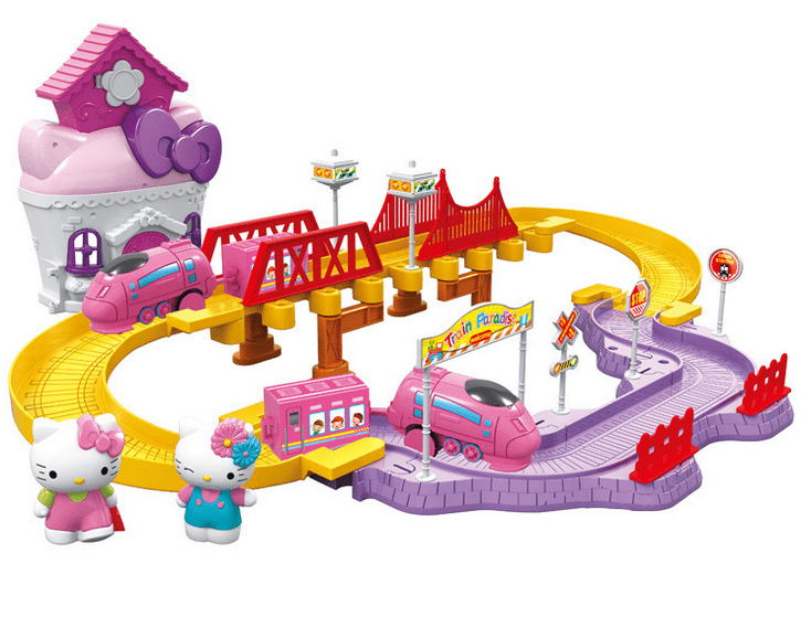 Супер интересная и захватывающая игра для всех поклонниц малышки Китти. Игровой конструктор содержит множество деталей, благодаря которым ребенок сможет построить реалистичную железную дорогу со всеми присущими ей элементами – эстакадой, мостом, подпорками, фонарями, дорожными знаками, ограждениями и т.д. А яркие красивые вагончики и восхитительный дом Китти оживят пейзаж, и сделаю игру еще более увлекательной.
