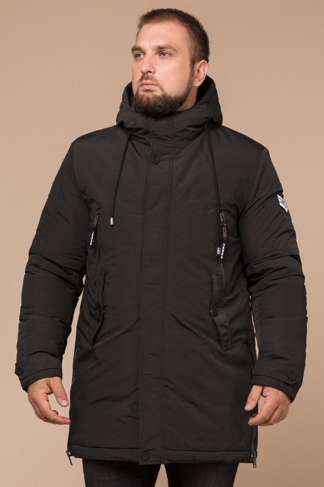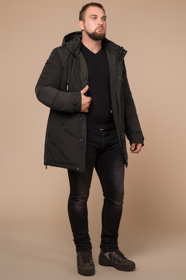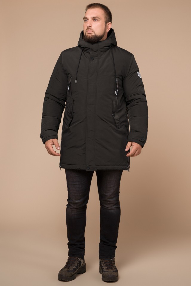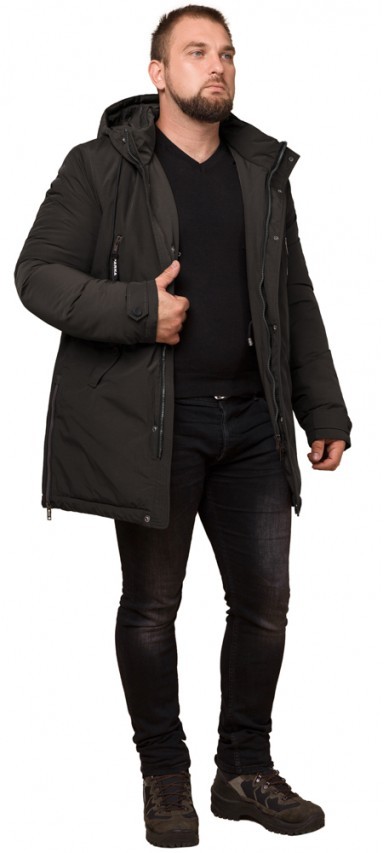 Коричневая парка мужская зимняя с капюшоном модель 19058