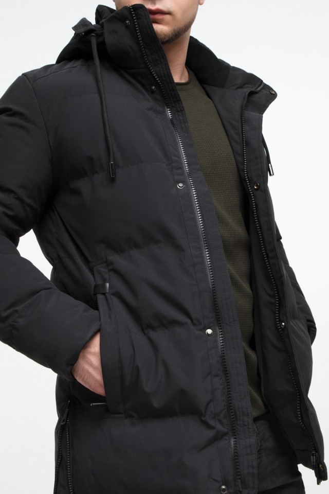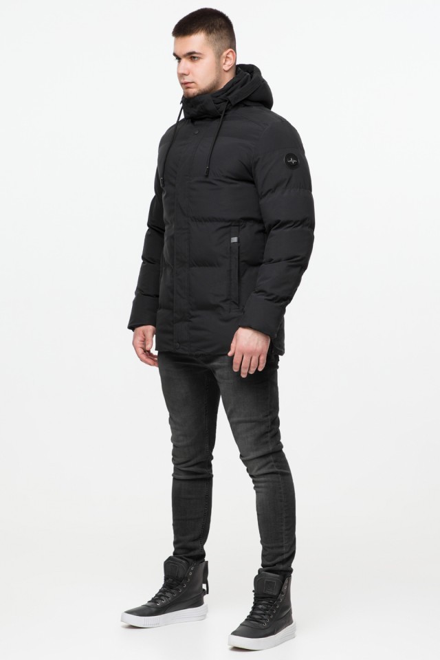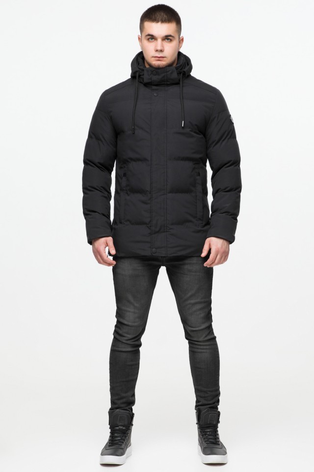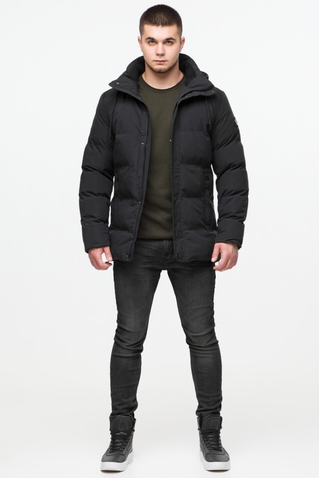 Короткая мужская молодежная куртка зимняя черного цвета модель 25280