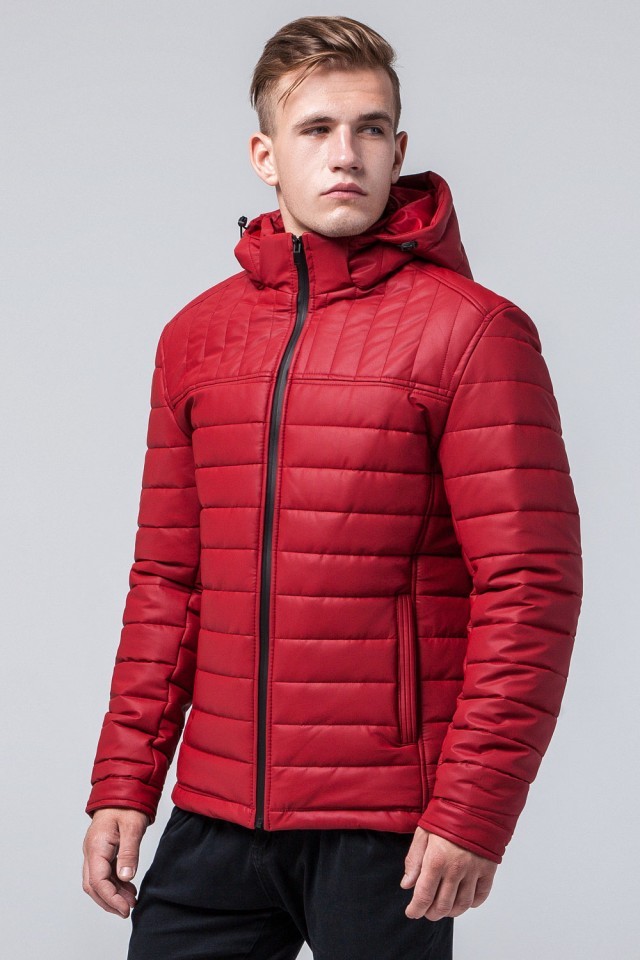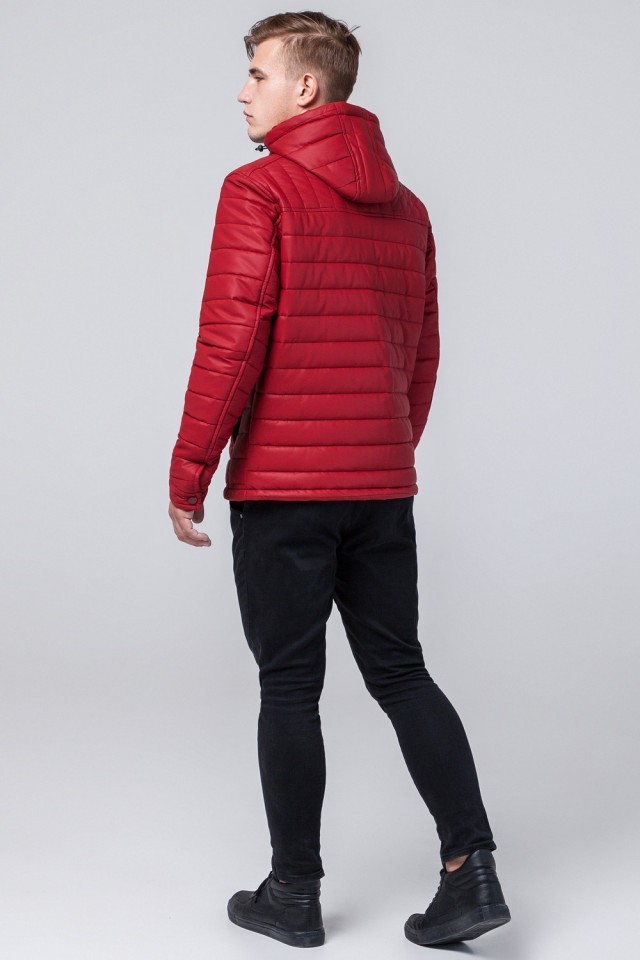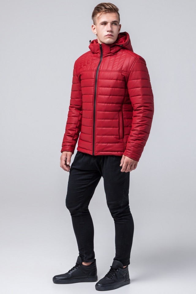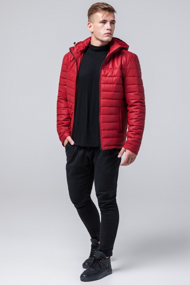 Красная куртка мужская молодежная осенне-весенняя с капюшоном модель 3357
