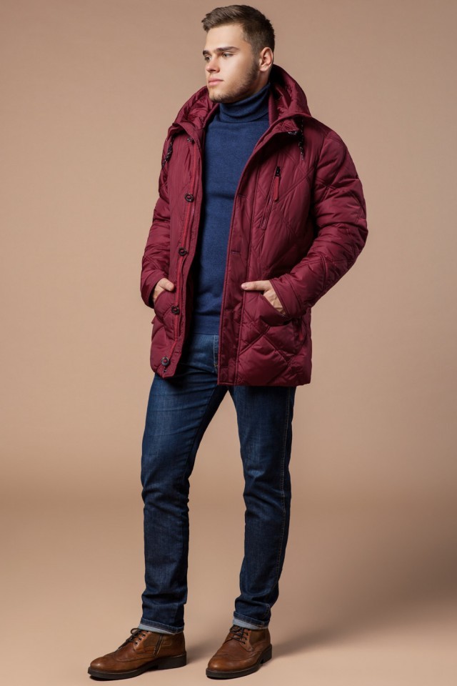 Красная зимняя куртка стеганая для мужчин модель 12481