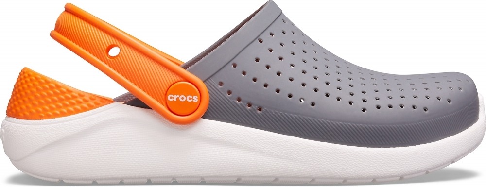 Модель Crocs LiteRide Kids Charcoal/White современные детские сабо, сочетающие стильный серый цвет с контрастной оранжевой шлейкой и стелькой. Впервые эта модель появилась в продаже в 2021 году как часть инновационной линейки LiteRide, известной своей сверхлегкой и амортизирующей стелькой.