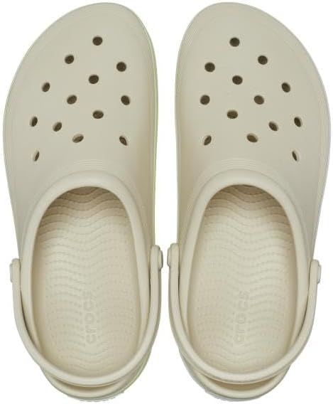 Модель изготовлена из лёгкого, водостойкого и гигиеничного материала Croslite™, который обеспечивает амортизацию, долговечность и простоту ухода. Высокая подошва (около 41 мм) с контрастной полосой добавляет спортивного шарма. Вентиляционные отверстия поддерживают циркуляцию воздуха, а ремешок на пятке обеспечивает надёжную фиксацию или возможность носить сабо как слипоны.