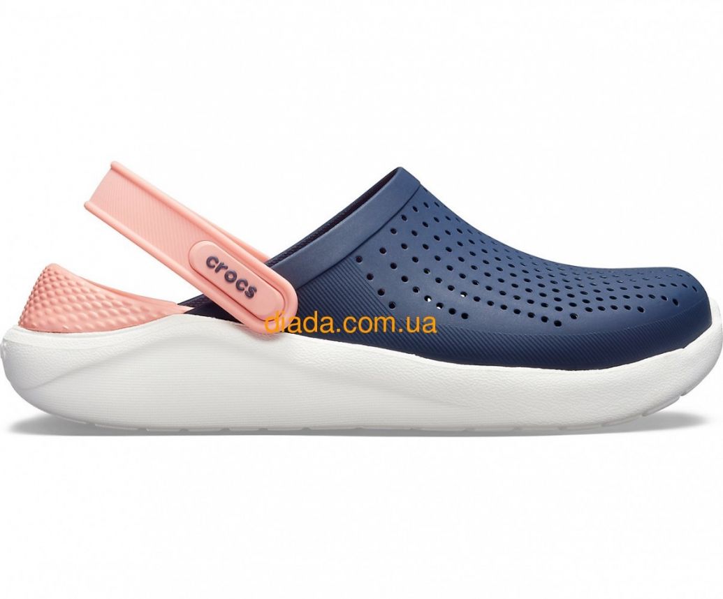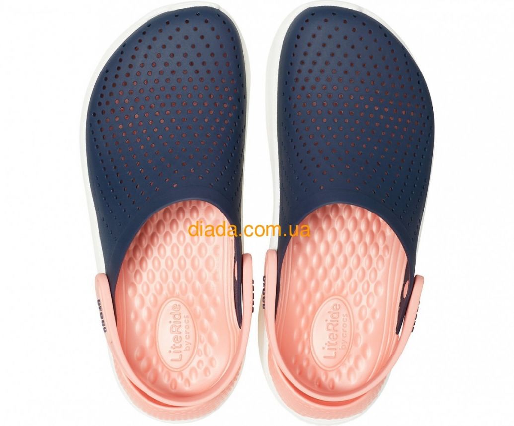 Crocs LiteRide Navy/Melon — стильные синие сабо с мягкой персиковой стелькой LiteRide™ для комфорта и поддержки стопы каждый день.