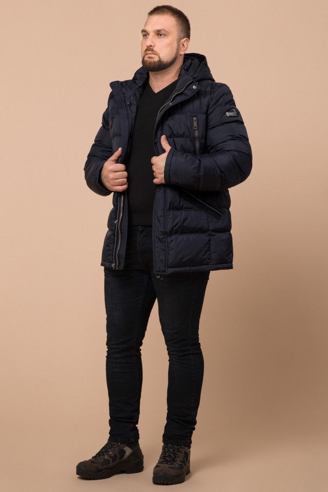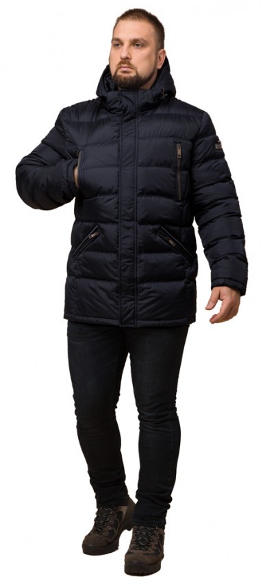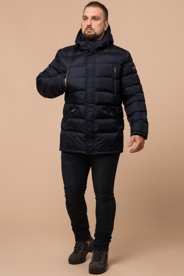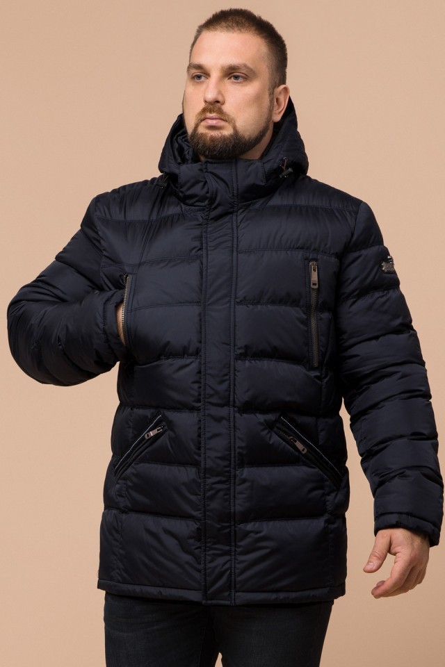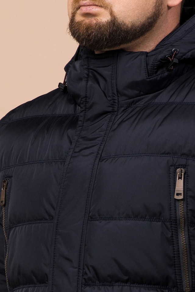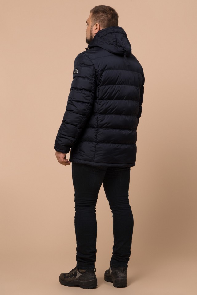 Куртка большого размера для мужчин зимняя черно-синяя модель 12952