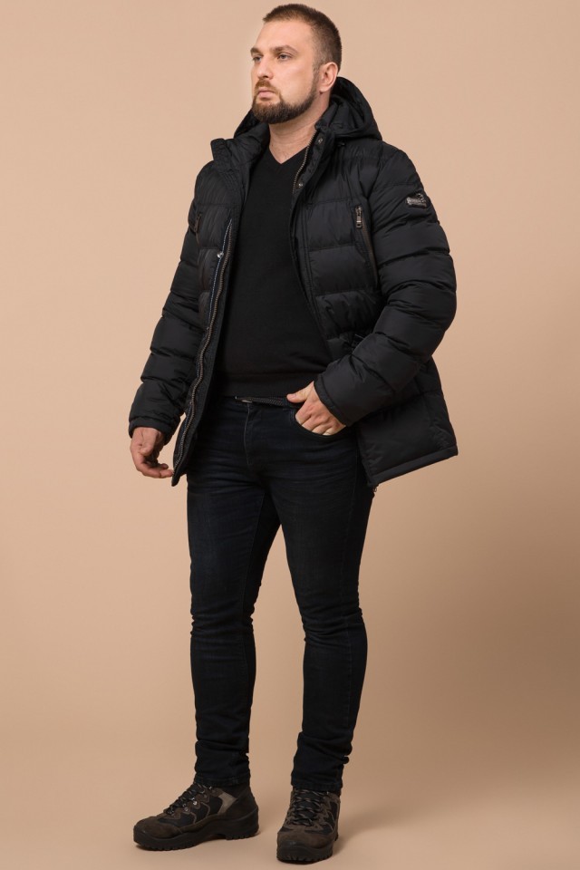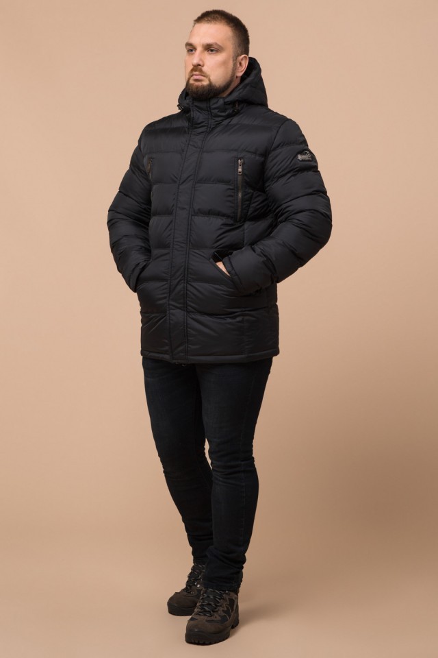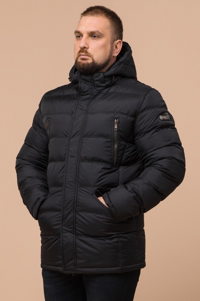 Куртка большого размера мужская черного цвета на зиму модель 12952
