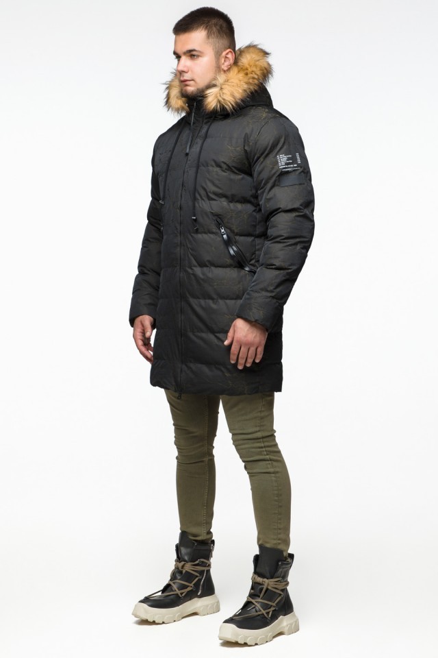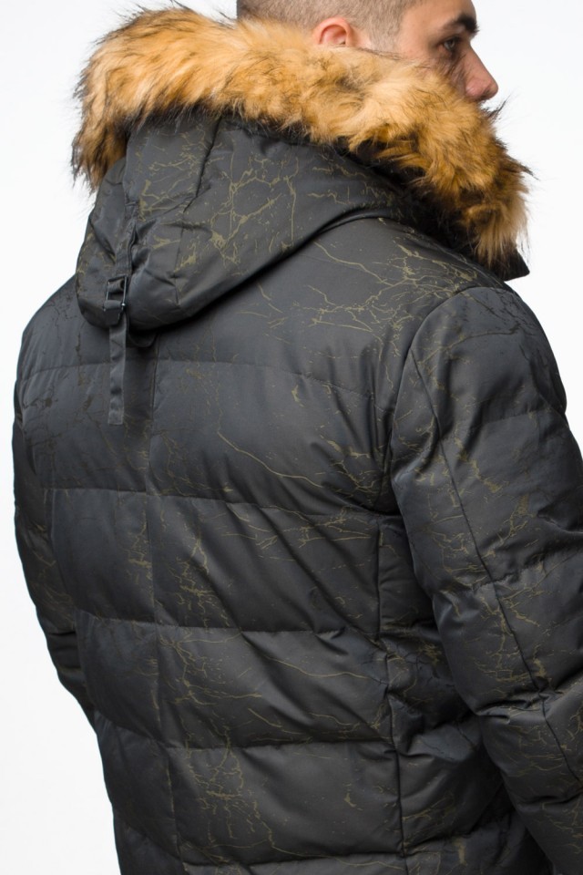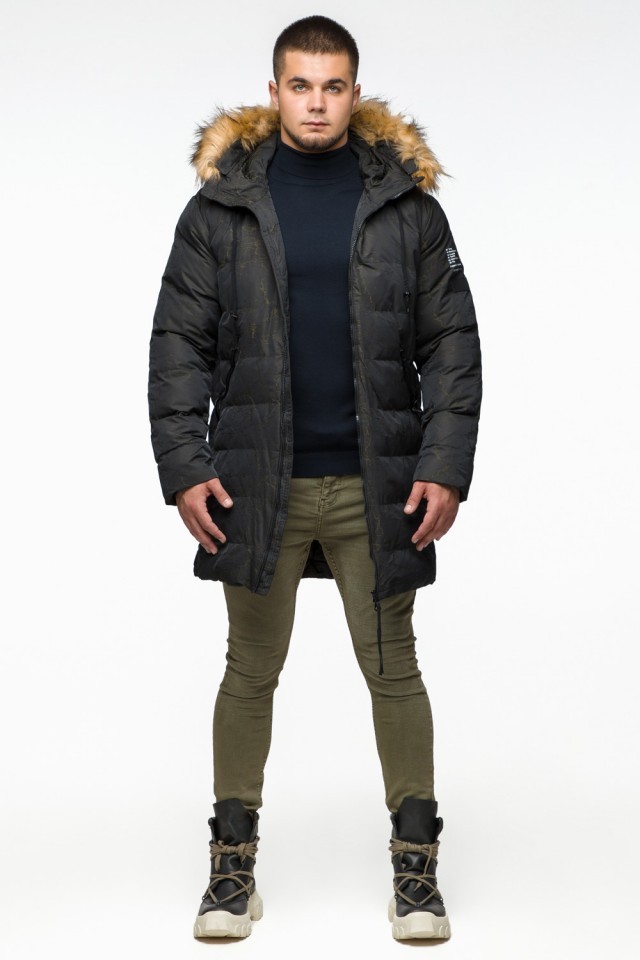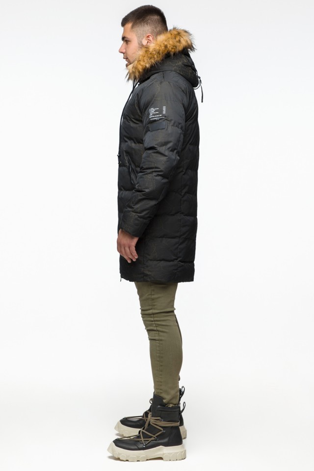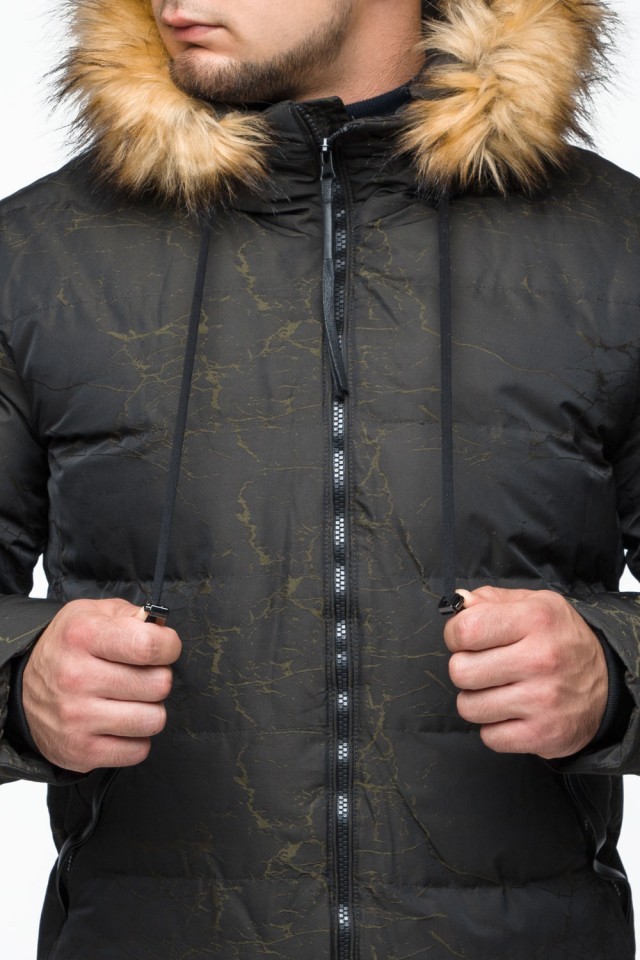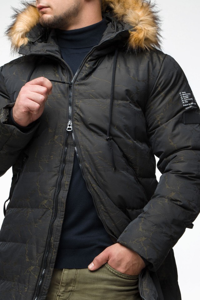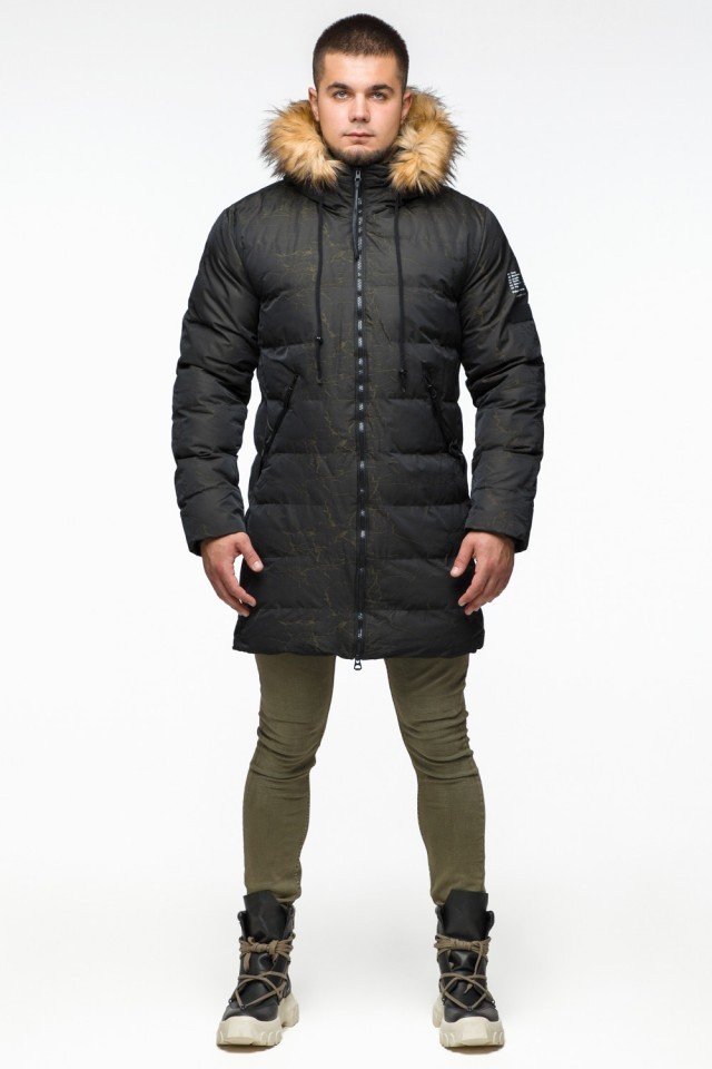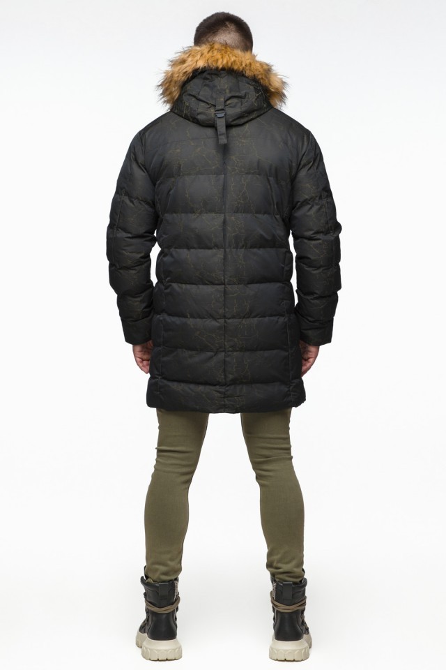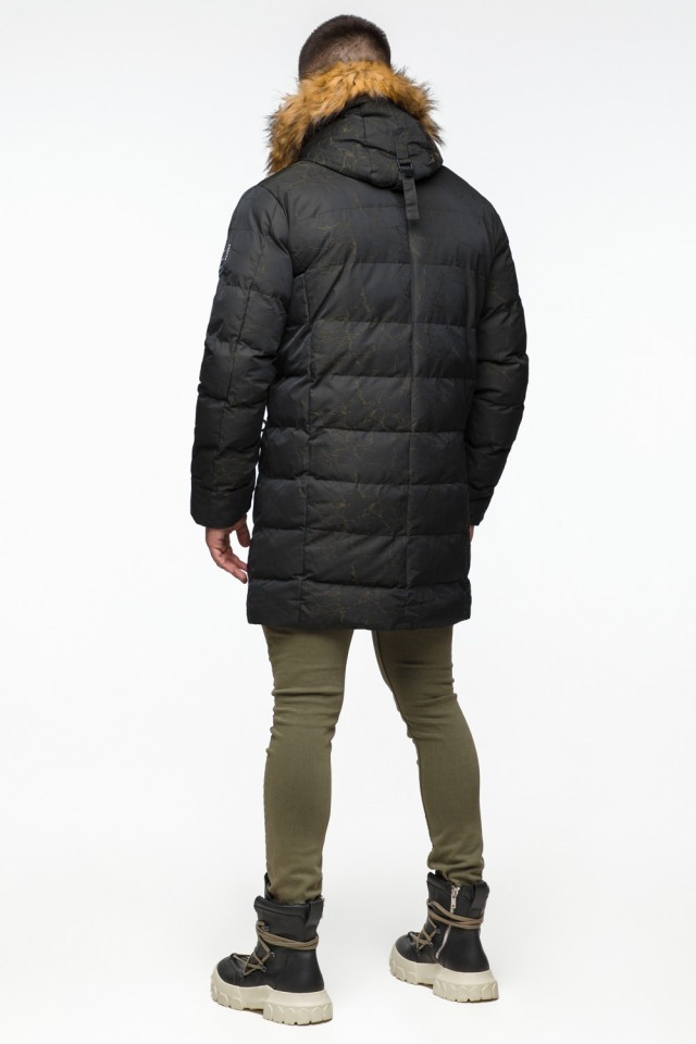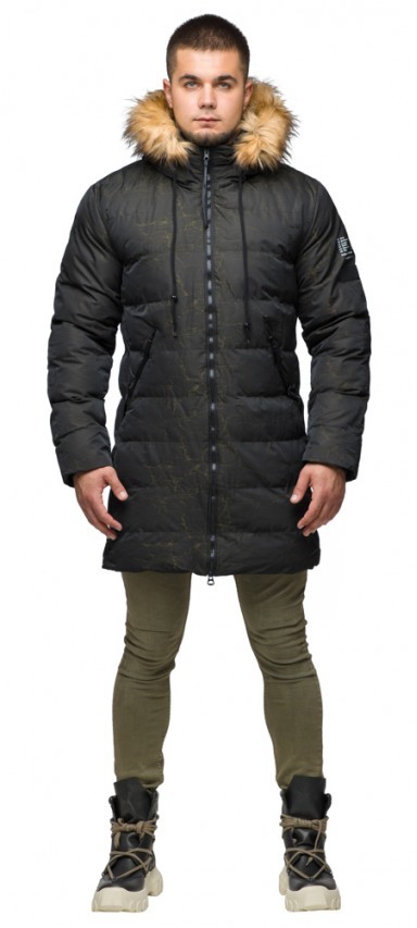 Куртка молодежная мужская дизайнерская зимняя темно-зеленого цвета модель 25410