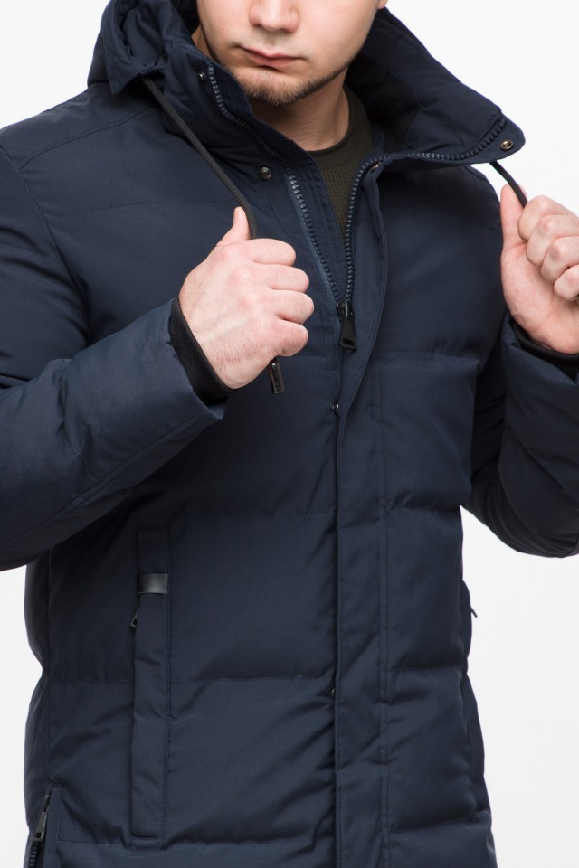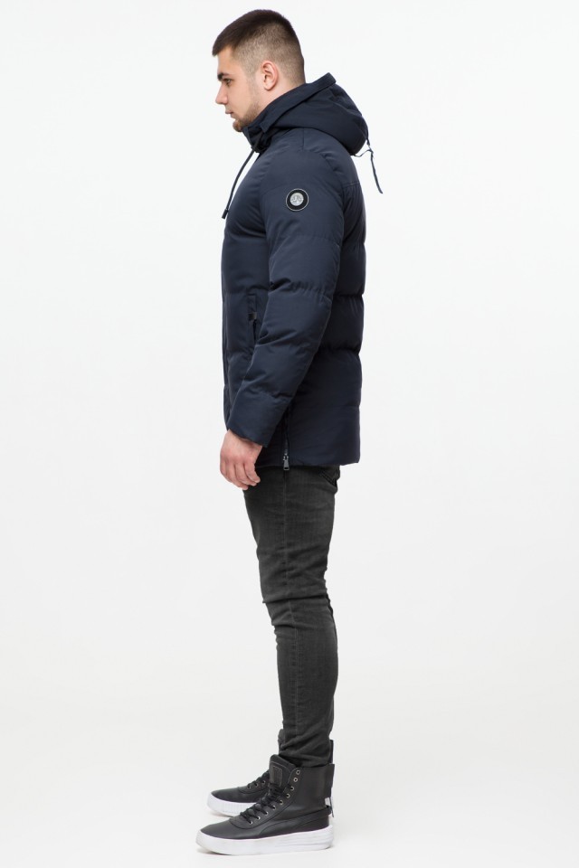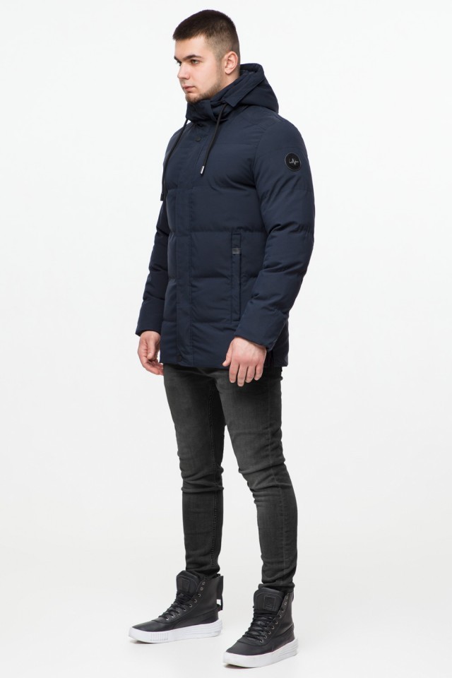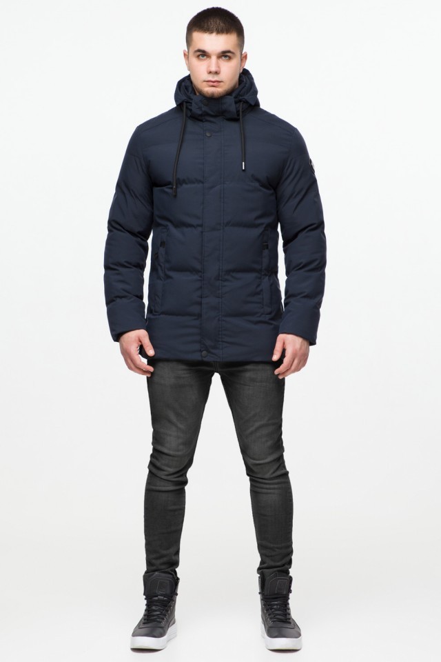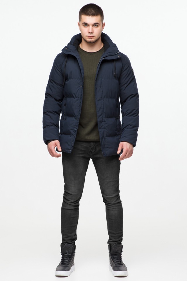 Куртка мужская молодежная синяя с капюшоном зимняя модель 25280
