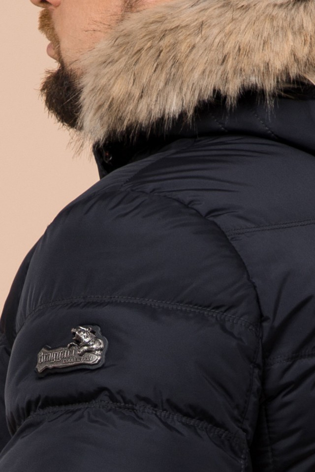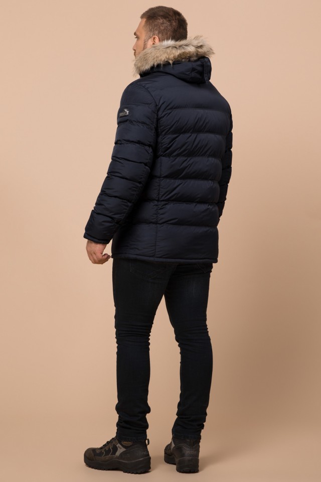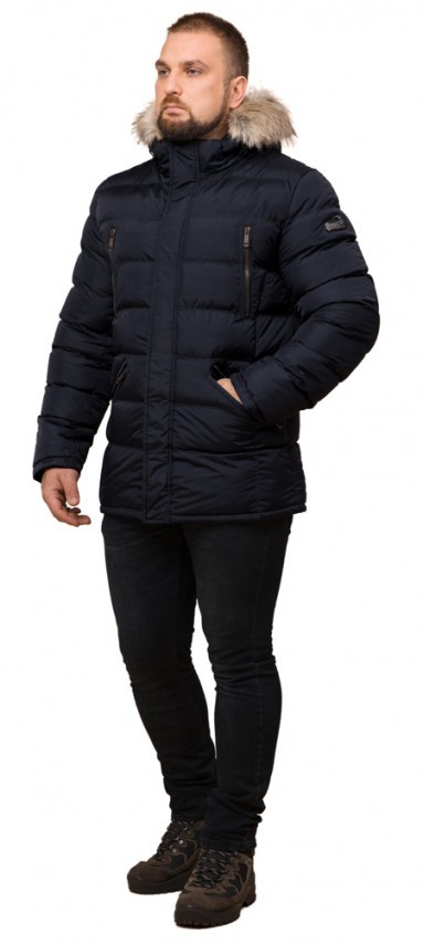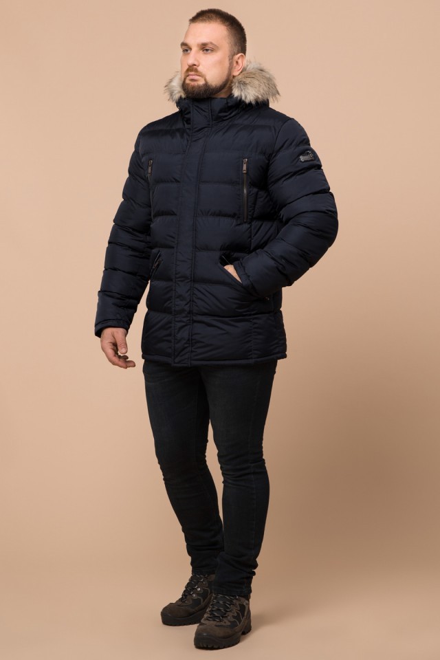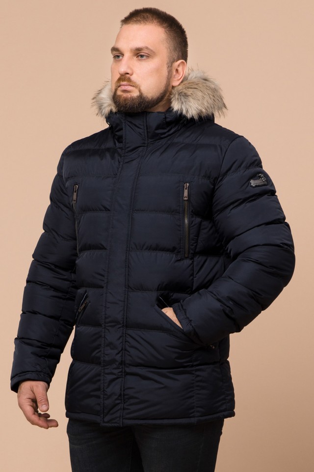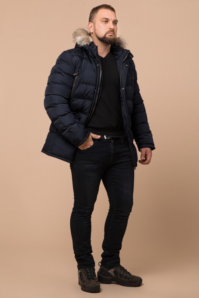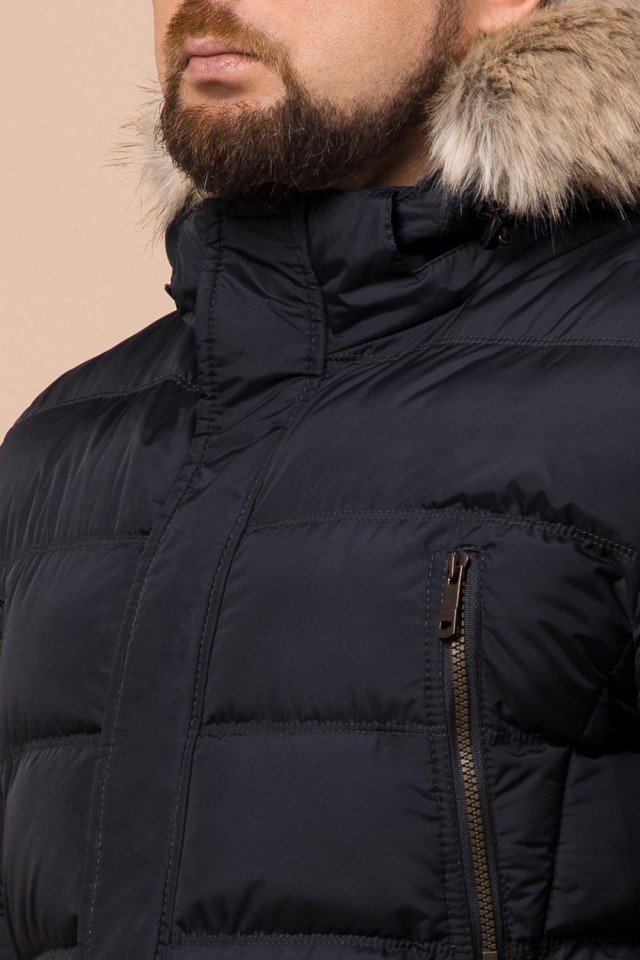 Куртка мужская зимняя черно-синяя большого размера модель 23752