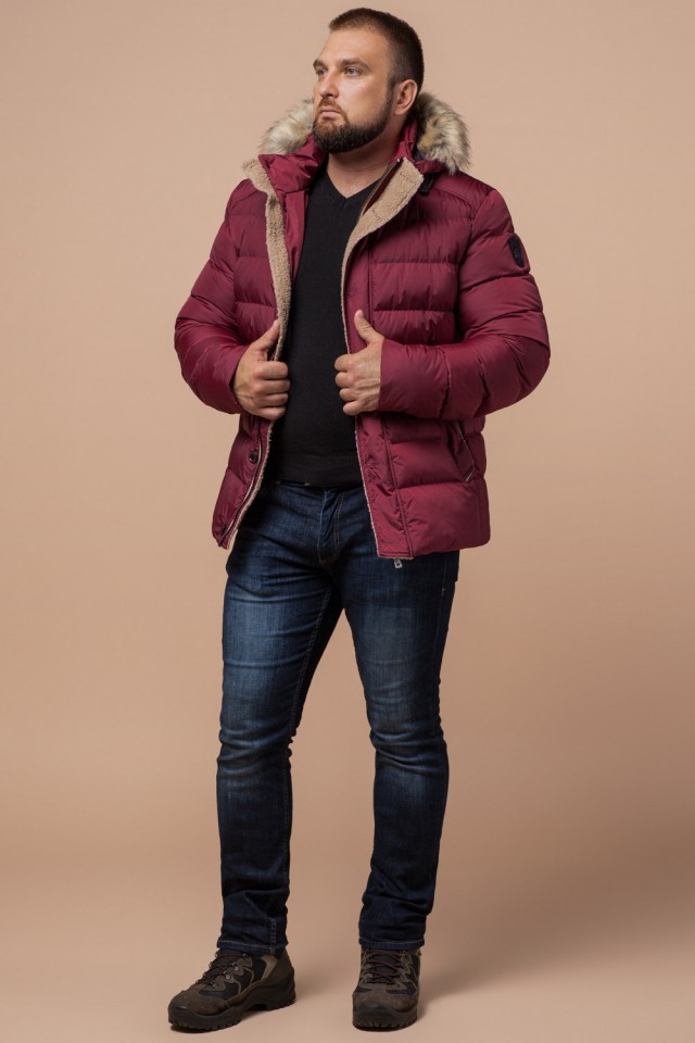 Куртка мужская зимняя оригинальная цвет бордовый модель 12149