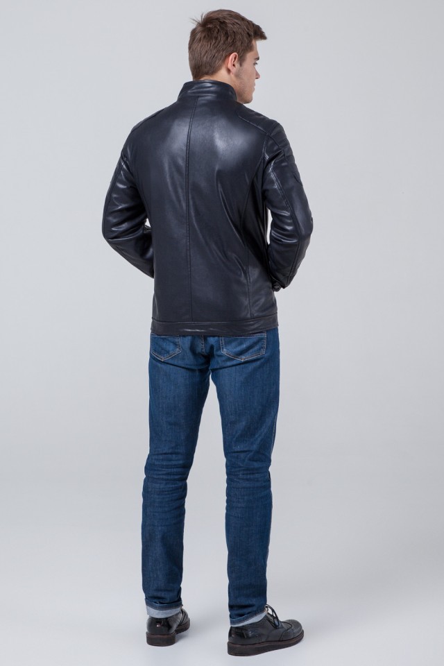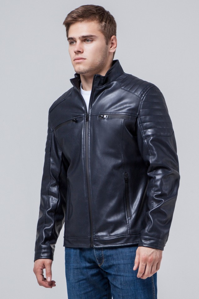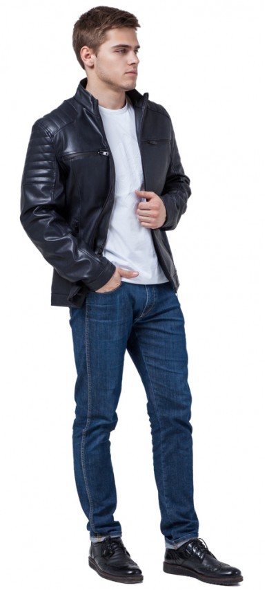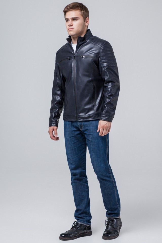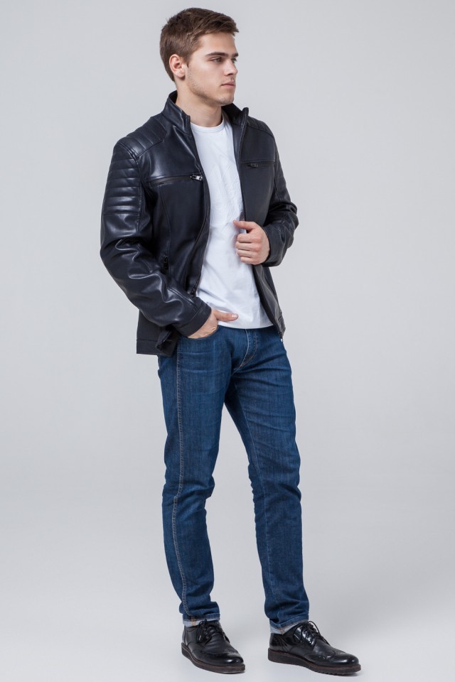 Куртка осенне-весенняя темно-синяя мужская молодежная с воротником модель 3645