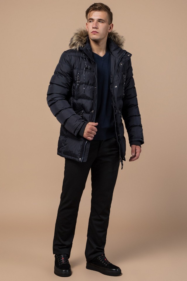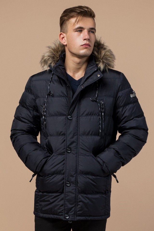 Куртка с карманами мужская темно-синяя зимняя модель 15335