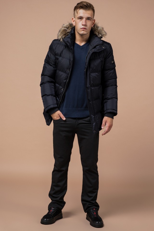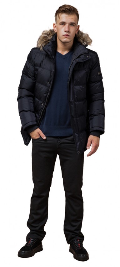 Куртка синяя на молнии мужская зимняя модель 24712