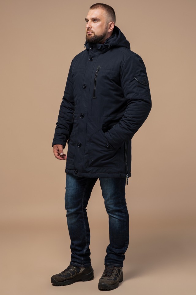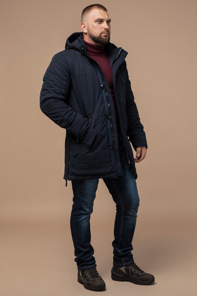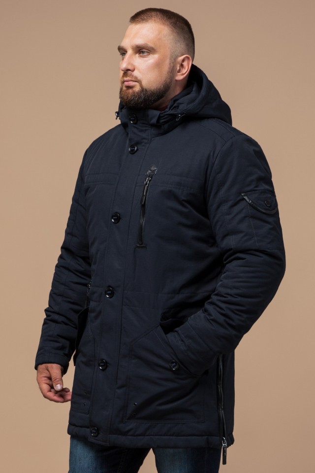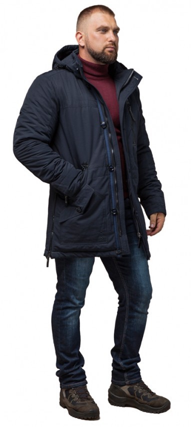 Куртка темно-синяя мужская с капюшоном зимняя модель 45777