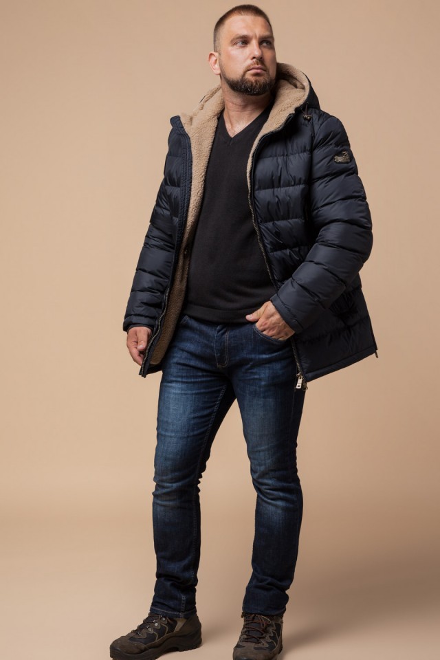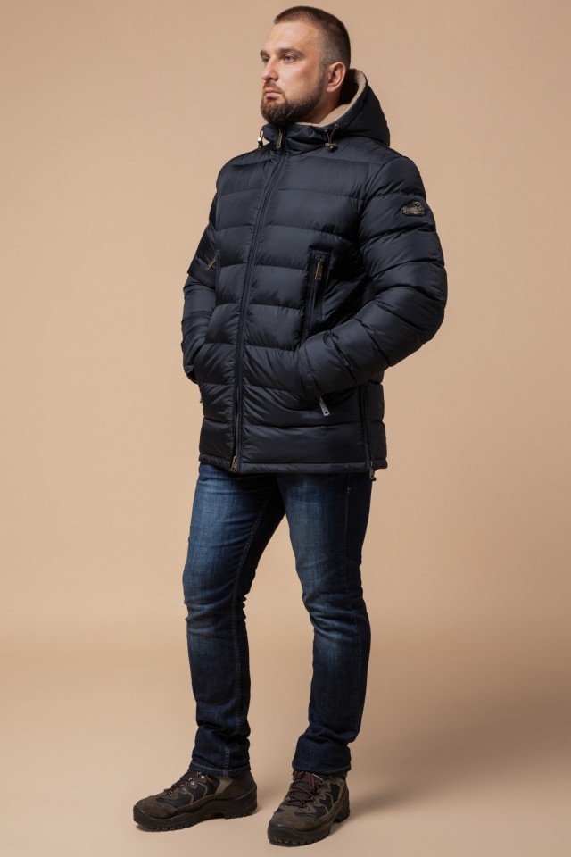 Куртка зимняя для мужчин темно-синяя удобная модель 25285