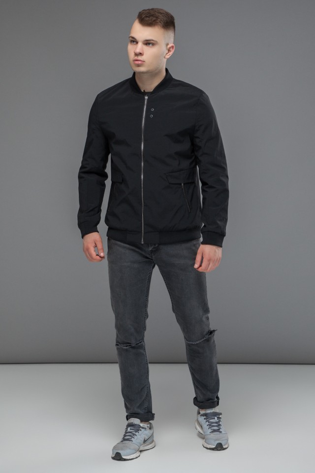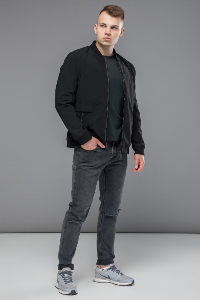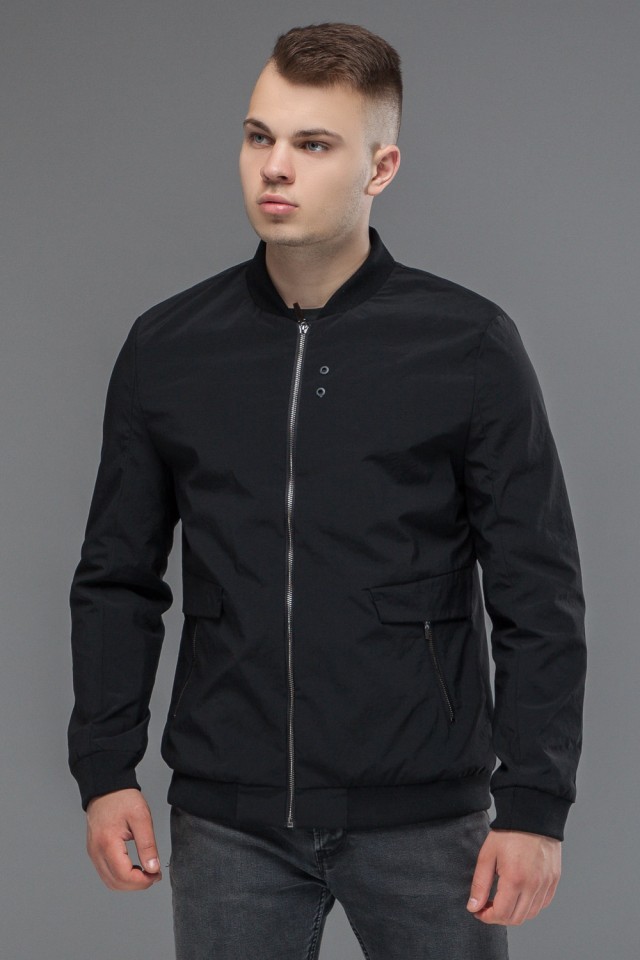 Легкий молодежный мужской бомбер осенне-весенний черный модель 32488