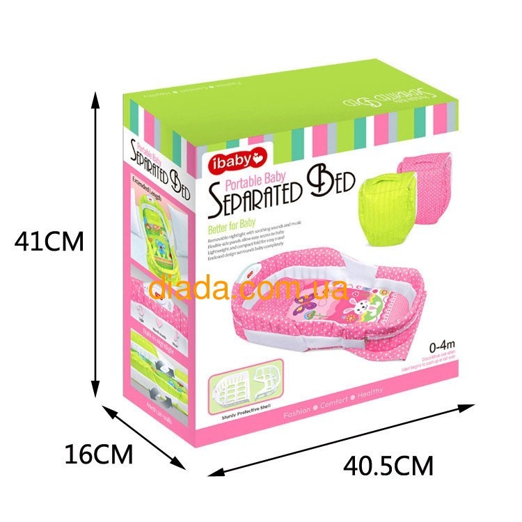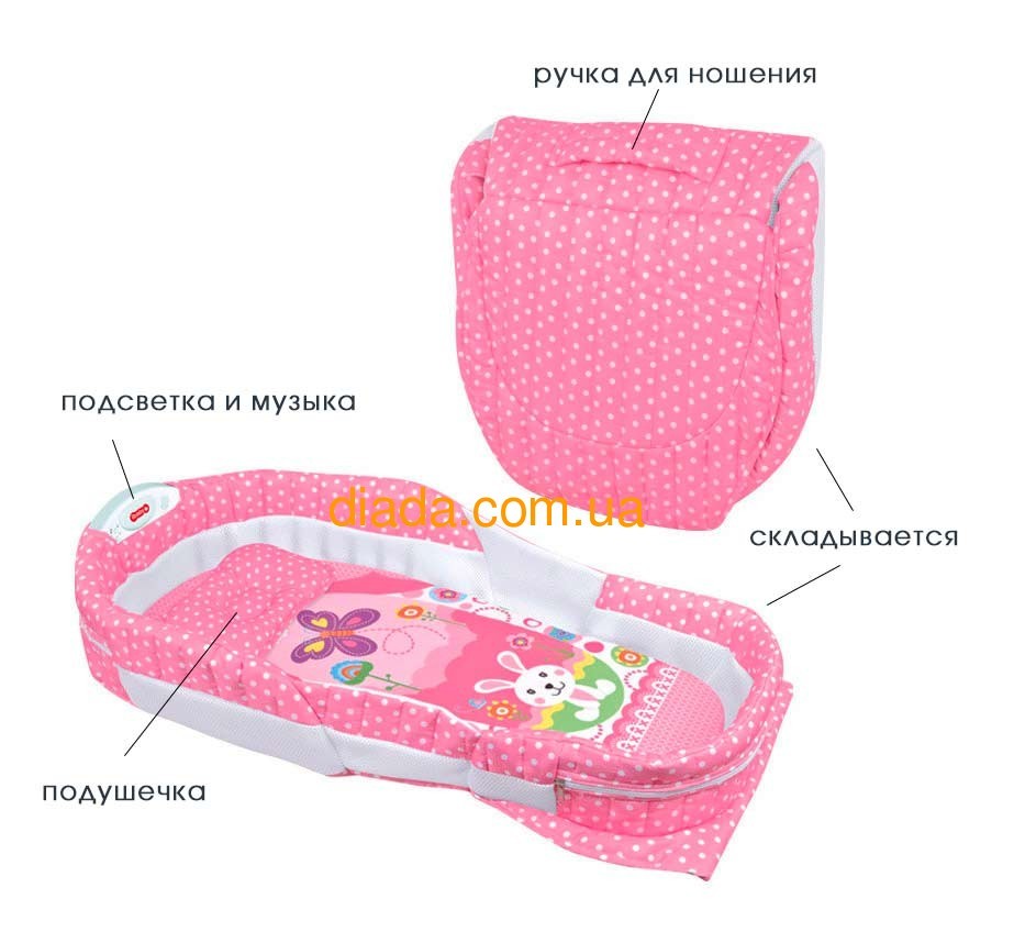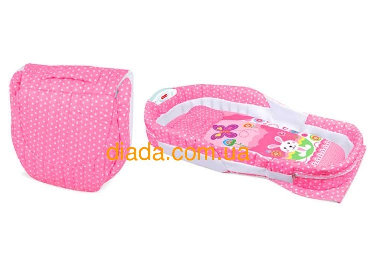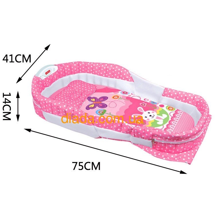 Люлька детская в кровать, переносная, складная, розовая.